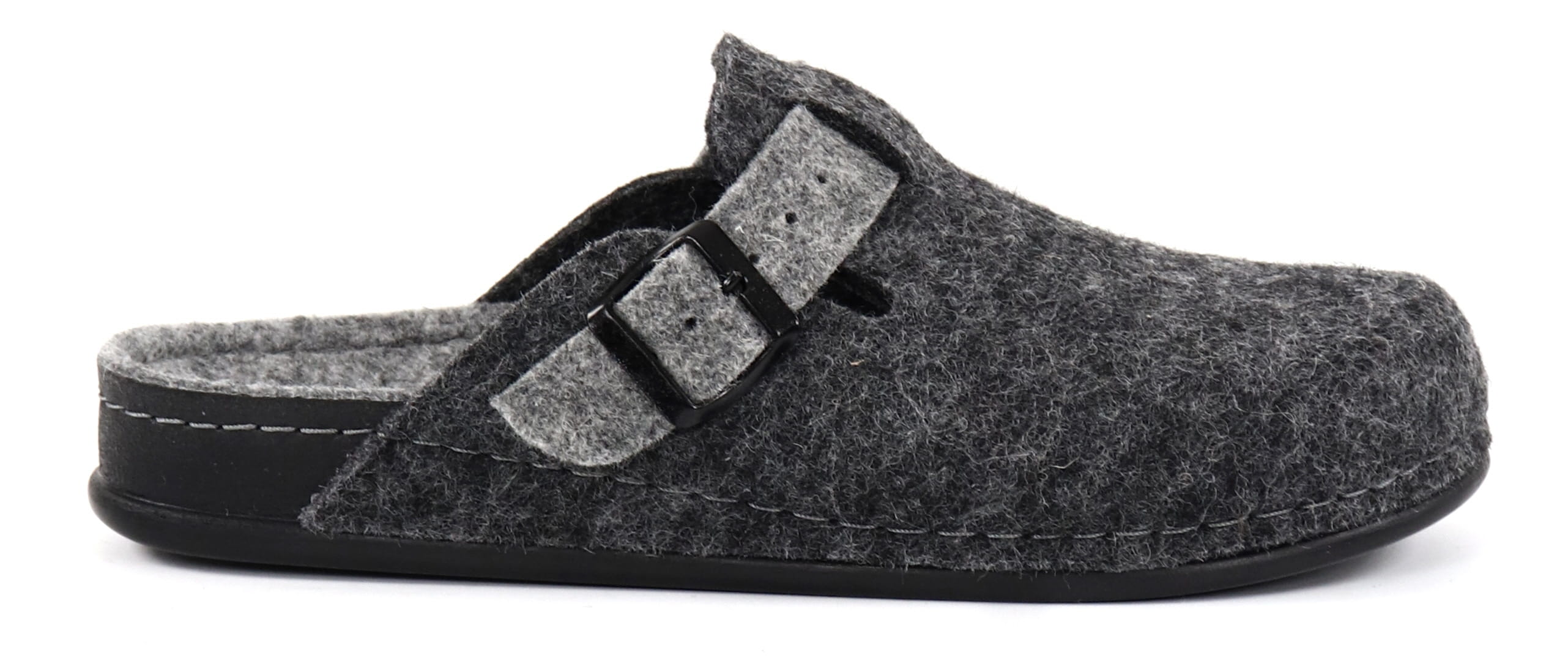 Migant Tofflor A932-3 svartVarma och lätta tofflor filtad ull.- Filtad ull- Anatomiskt formad innersula- Justerbar rem med spänne - Klackhöjd ca 3 cm- Yttermaterial och foder 70% ull, 30% polyester