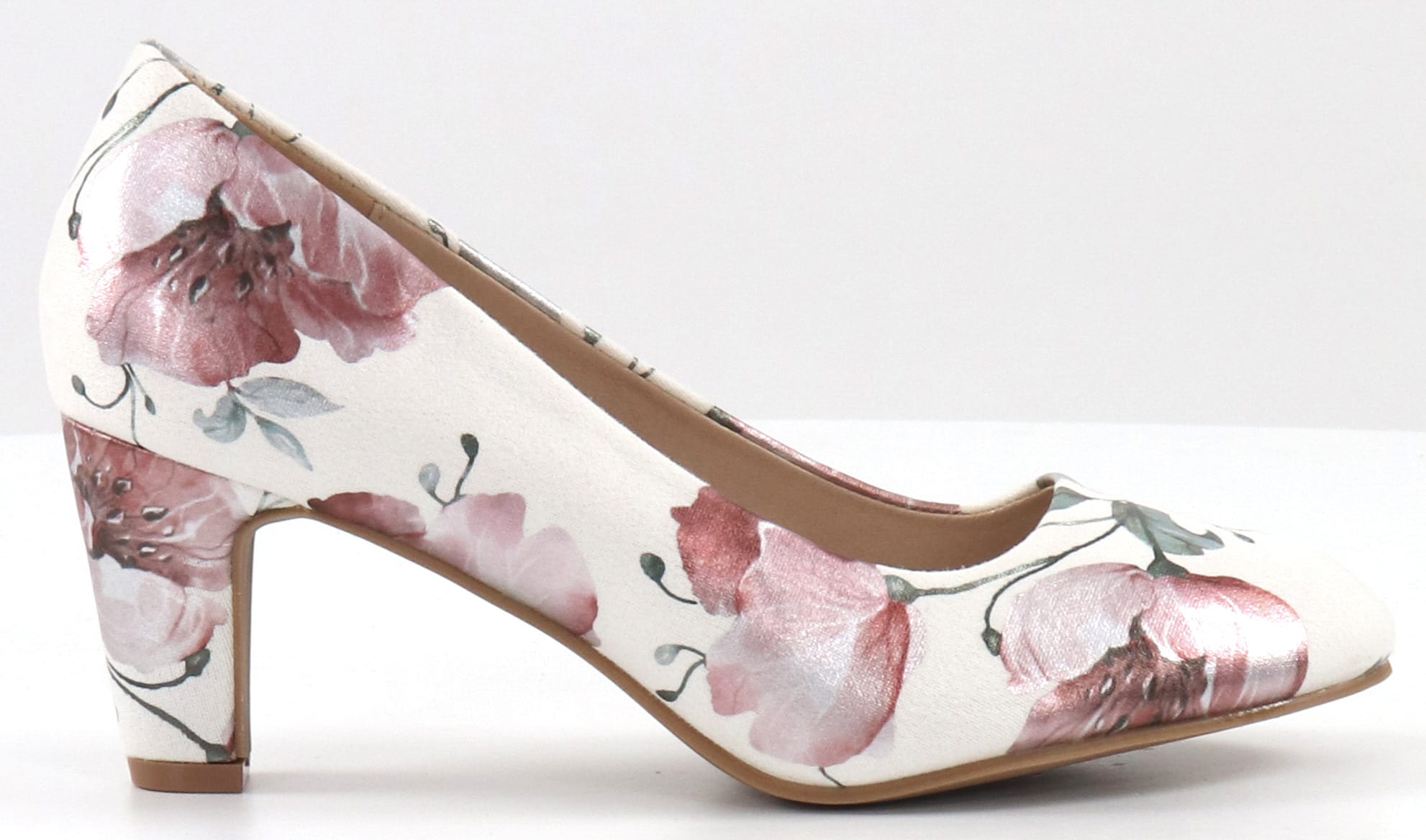 Vackert mönstrade pumps borstad textil.