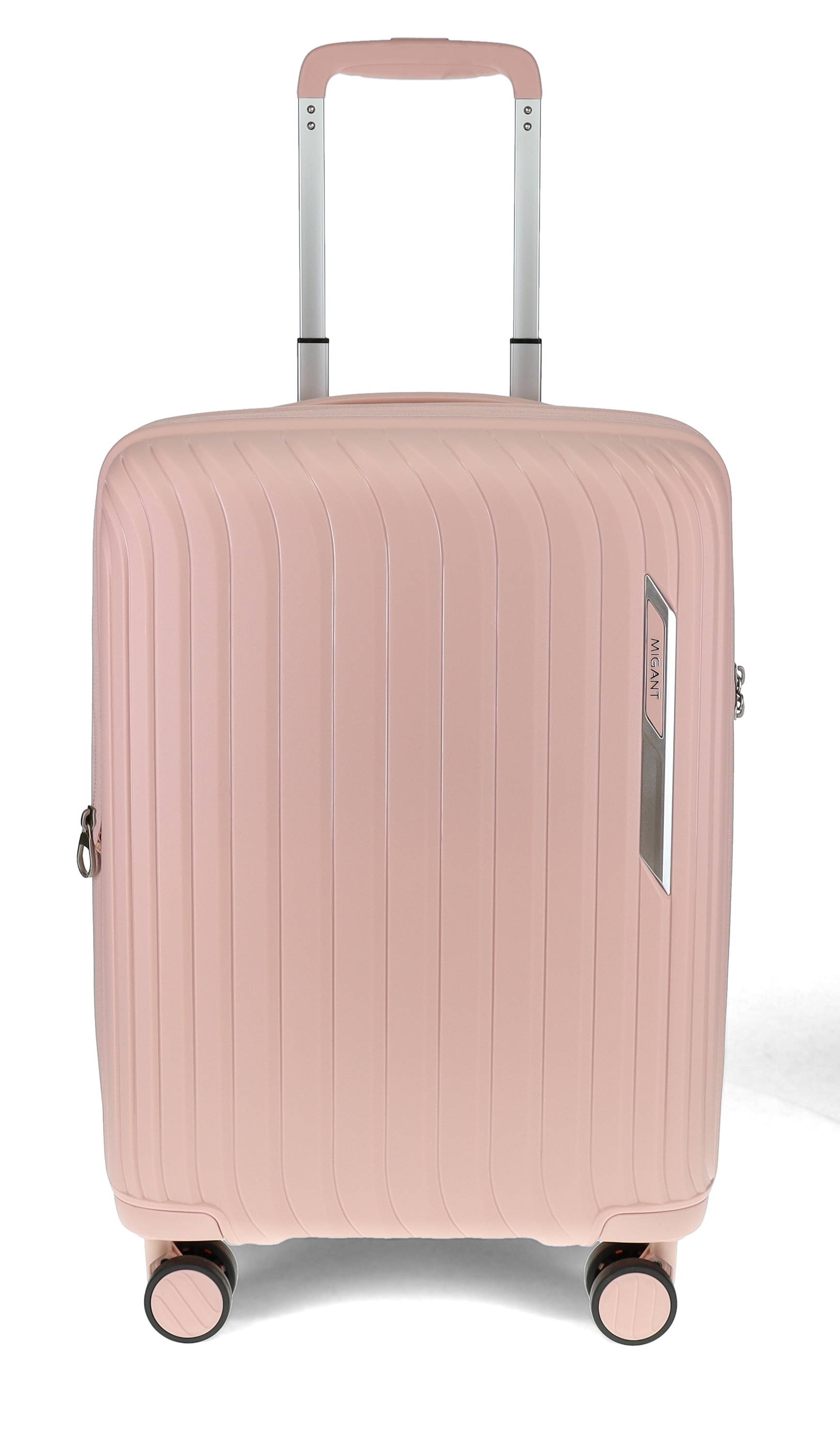 Migants högkvalitativa resväska av polypropen, som är lätt, praktisk och lättrullad med sina fyra dubbla hjul.