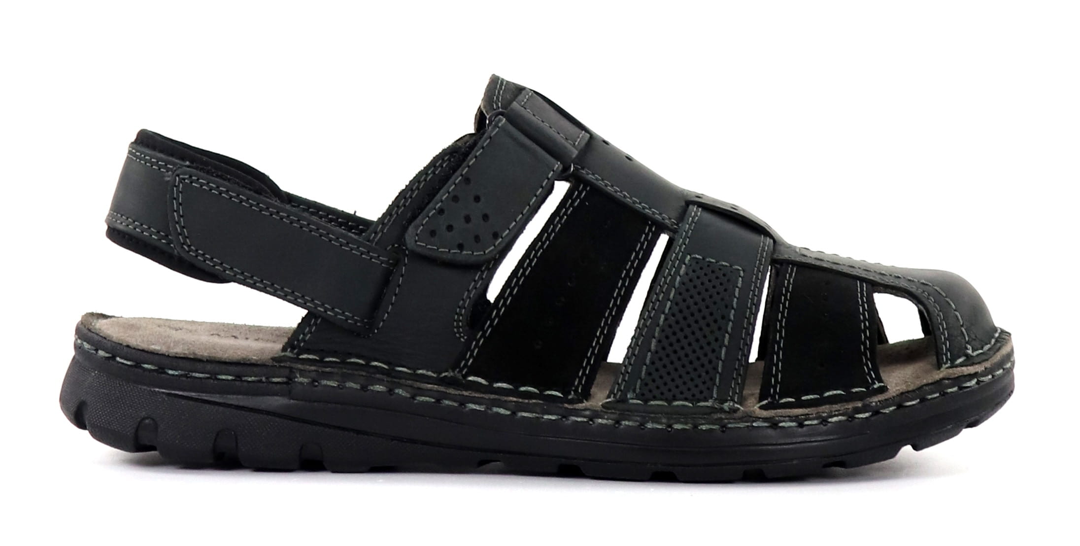 Herrsandaler i äkta läder med tre justerbara kardborreband.