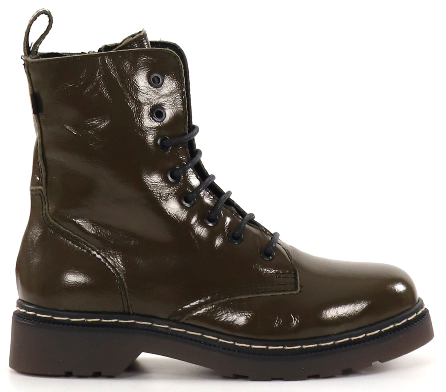 Glänsande stridsstövlar i läder, snörning fram och dragkedja på insidan.