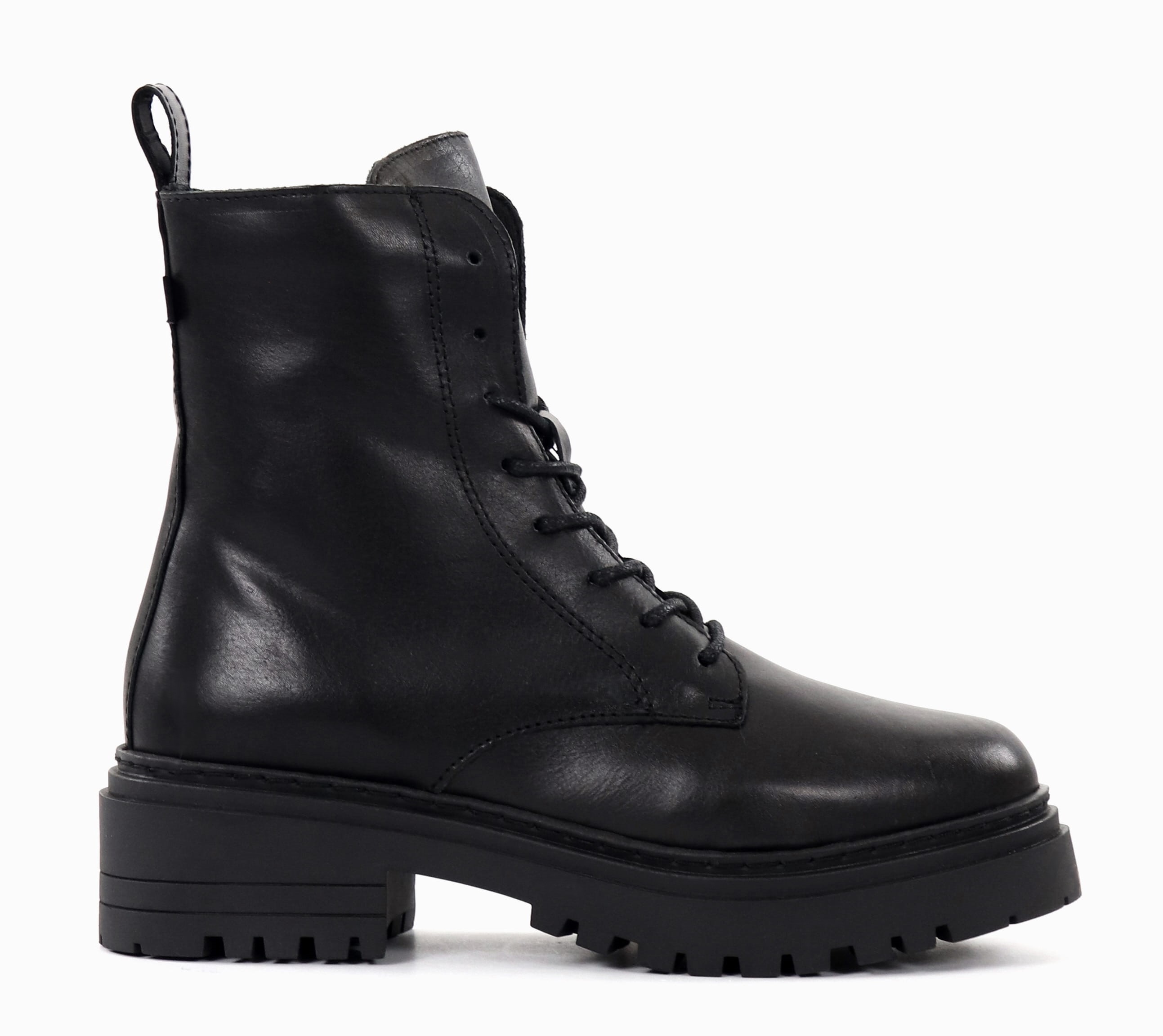 Tjocksulade, combat boot-stil läder ankelstövlar med ett mjukt konstgjord pälsfoder.