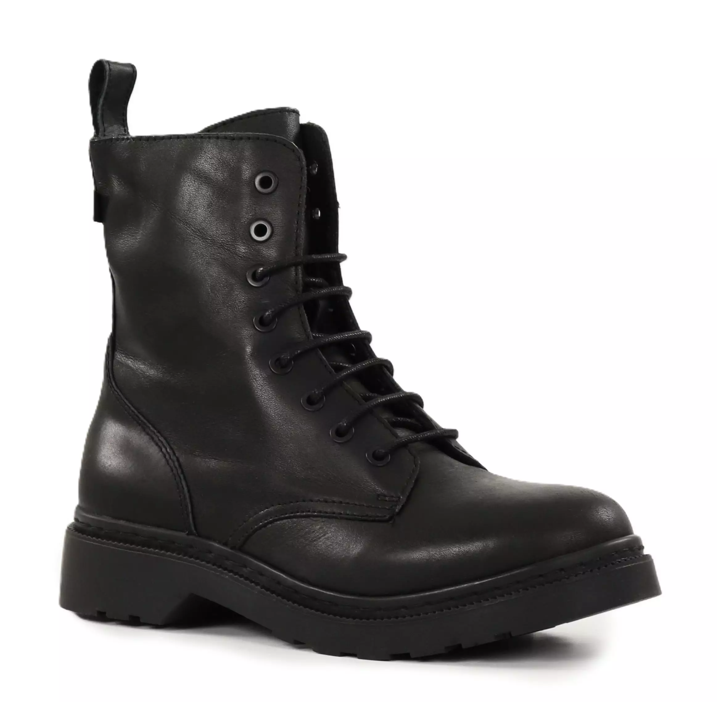 Svarta stövletter med ribbad design som kombinerar ett robust utseende och praktiska egenskaper. Dragkedjan på sidan gör dem enkla att ta på och snörningen gör att du kan justera skorna efter dina fötter. Det perfekta valet för mångsidigt vardagsbruk!