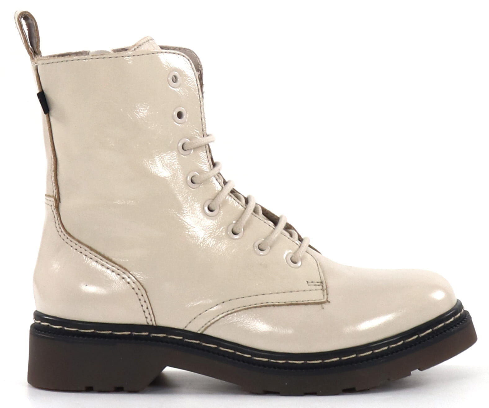 Glänsande stridsstövlar i läder, snörning fram och dragkedja på insidan.