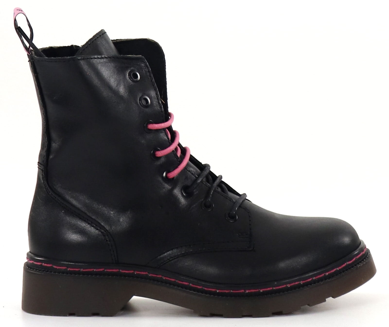 Snygga läderboots med rosa detaljer.