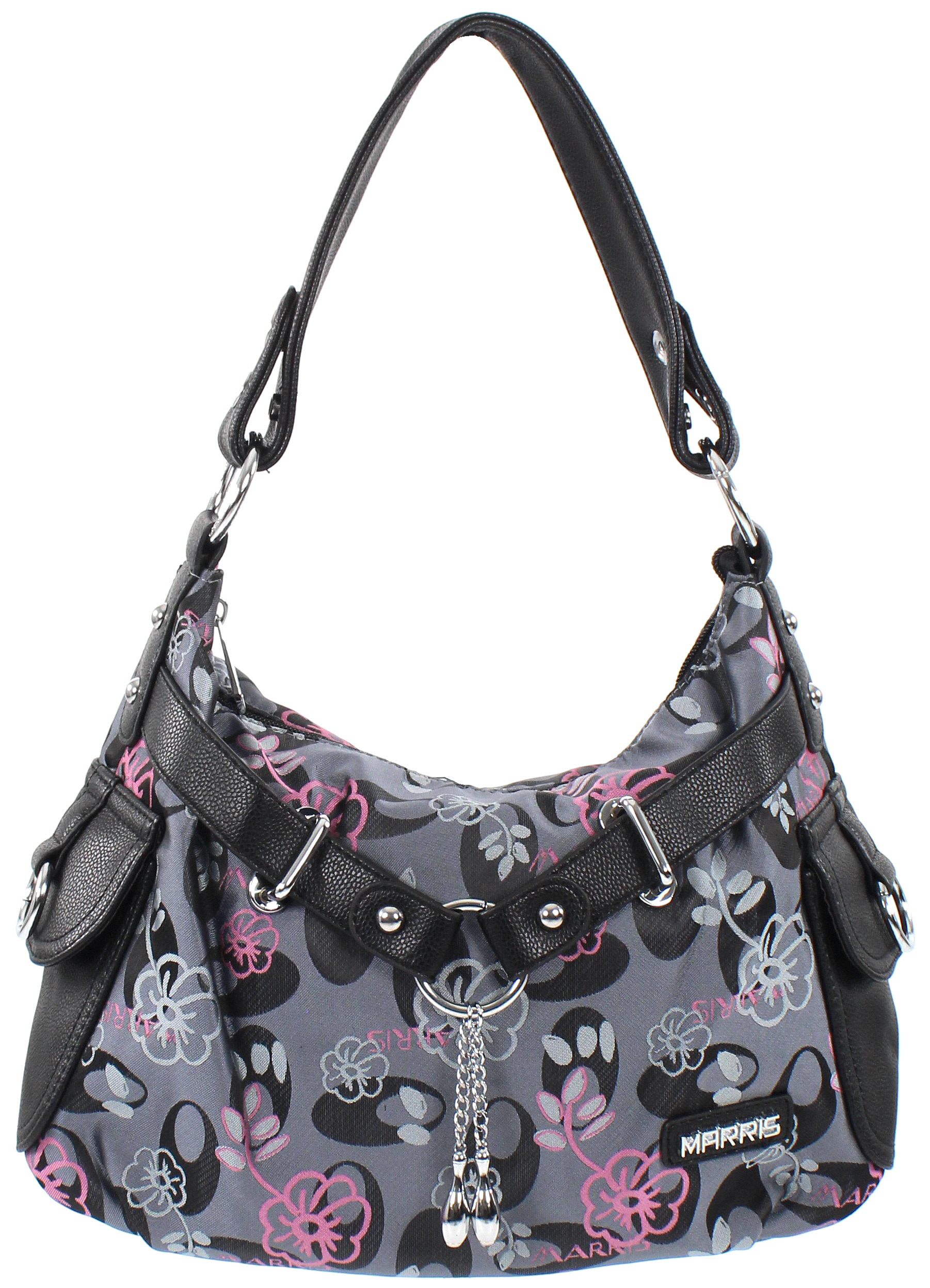 Nabo Väska med blommönster Marris NK1743 grå/svart