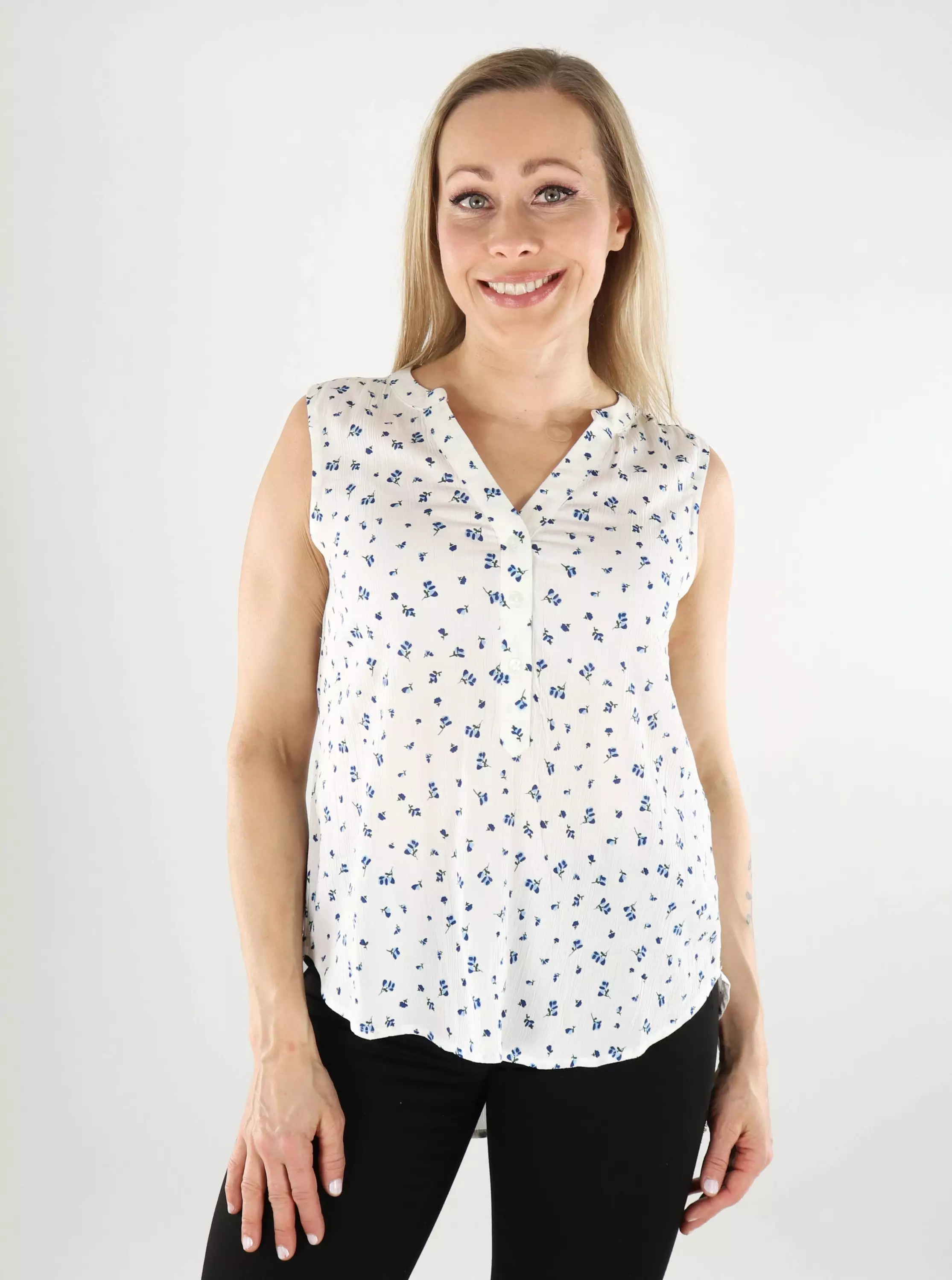 Only blommig topp för kvinnor cloud dancer/blue bella