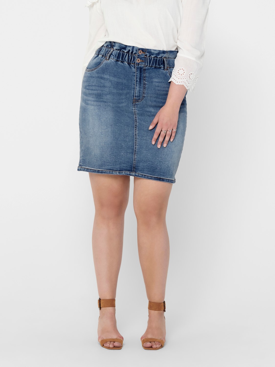 Snygg jeanskjol med stretchig gummiband i midjan.