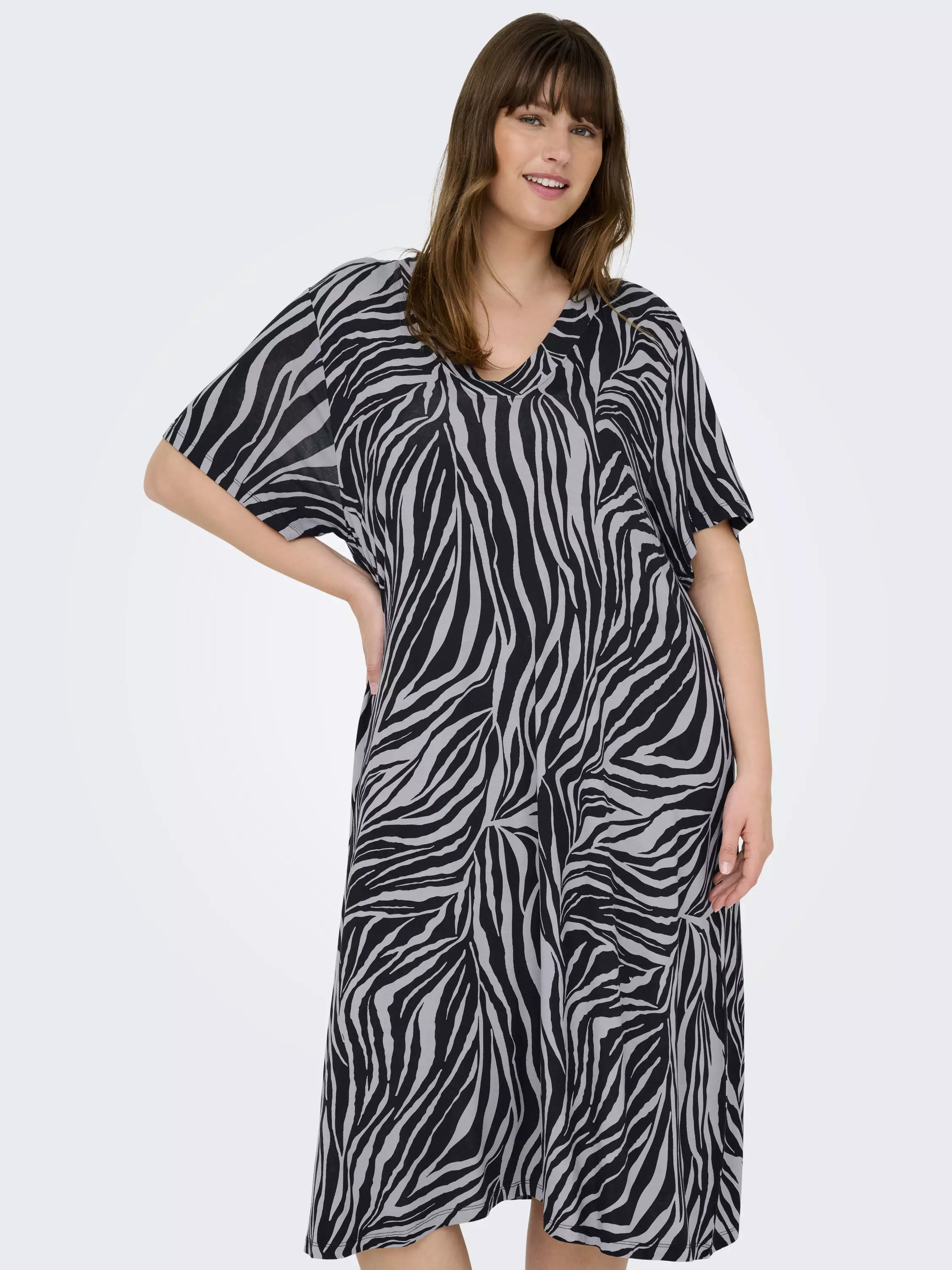 En mönstrad klänning i plus size gjord av en stretchig och andningsbar viskos-elastanblandning.