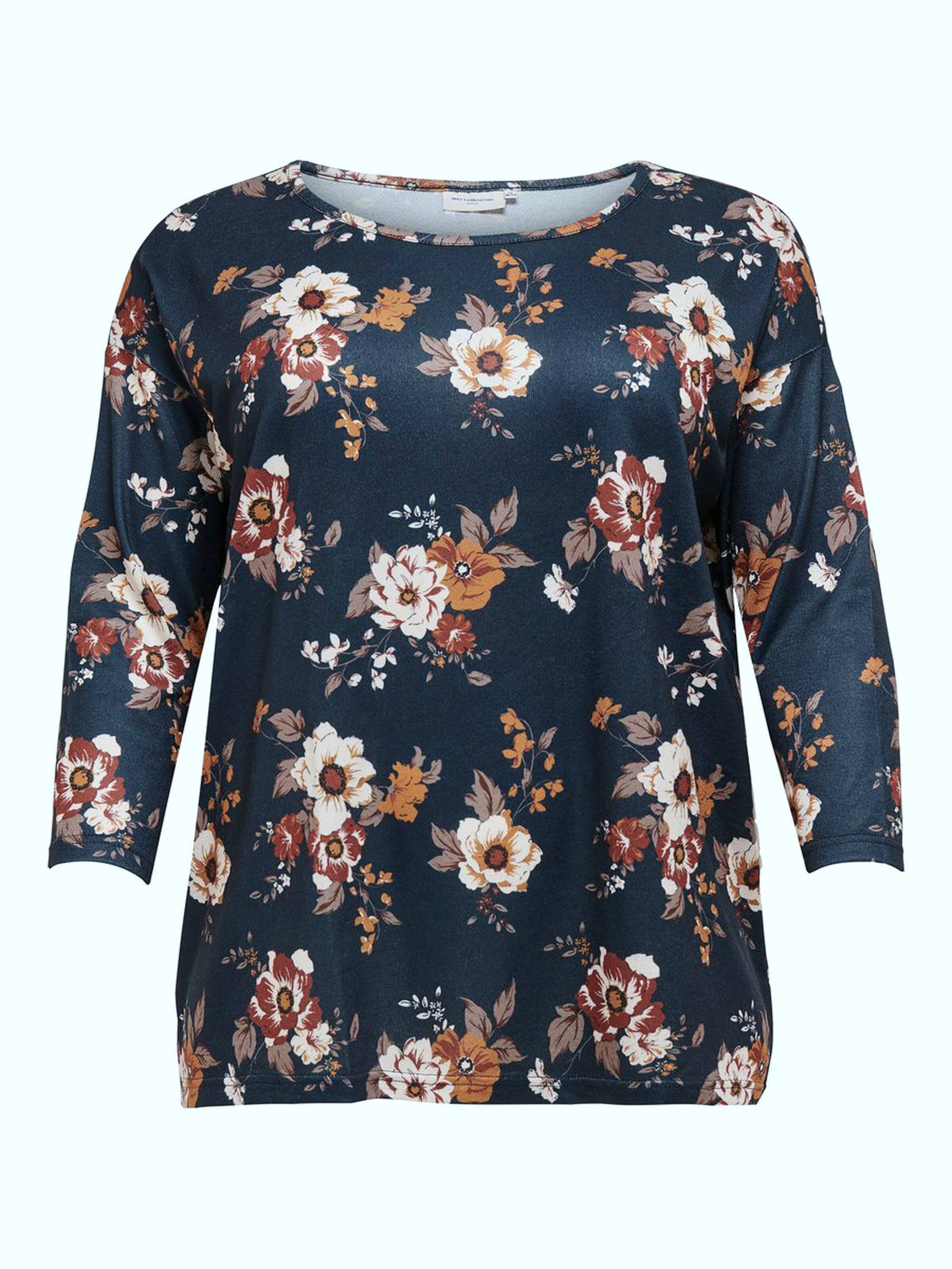 Only Carmakoma Stickad tröja Alba mörkblå/flowers