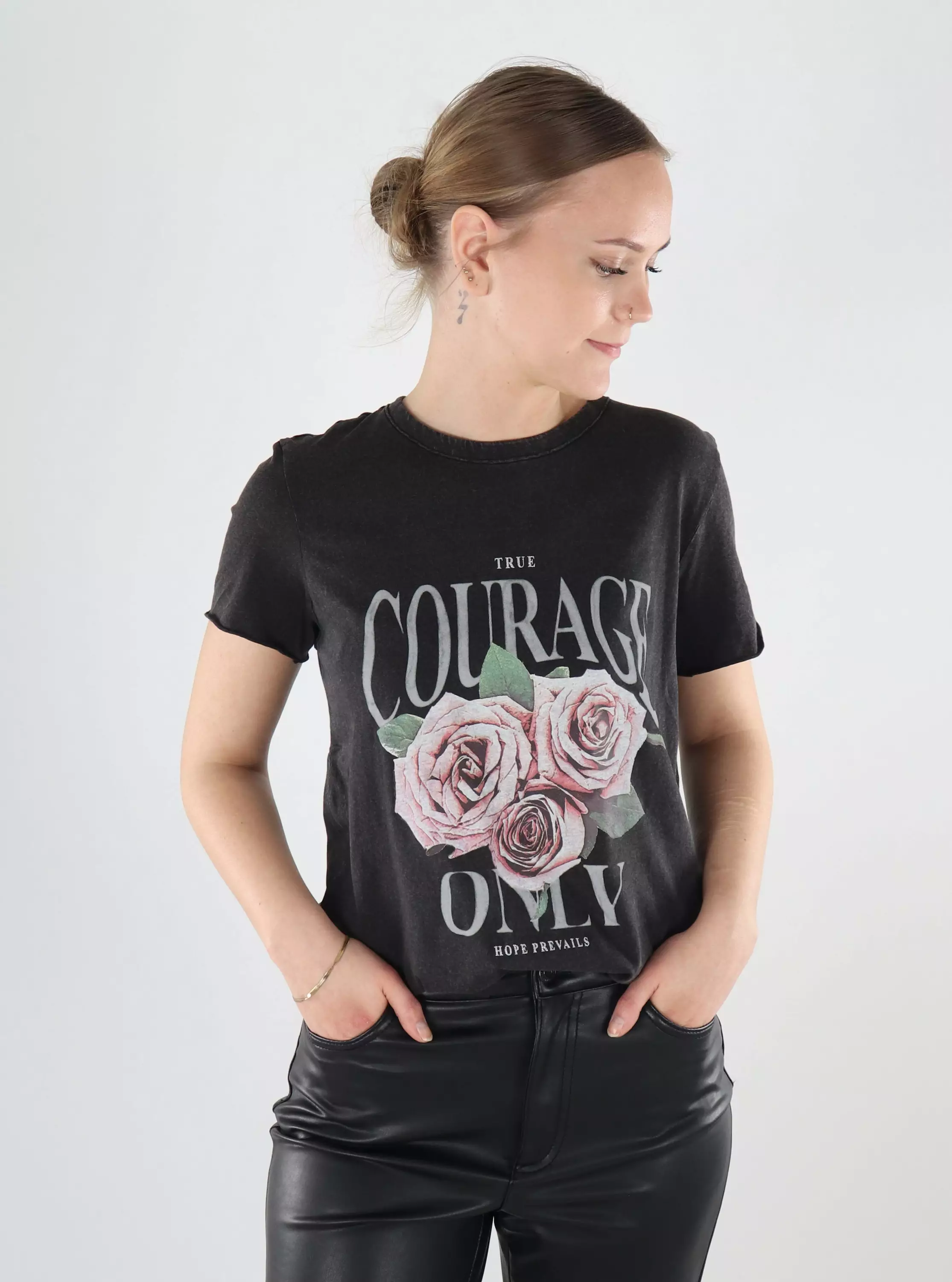 Ge din outfit en touch av personlighet och attityd med Onlys snygga tryckta t-shirt, tillverkad av 100 % ekologisk ekologisk bomull!