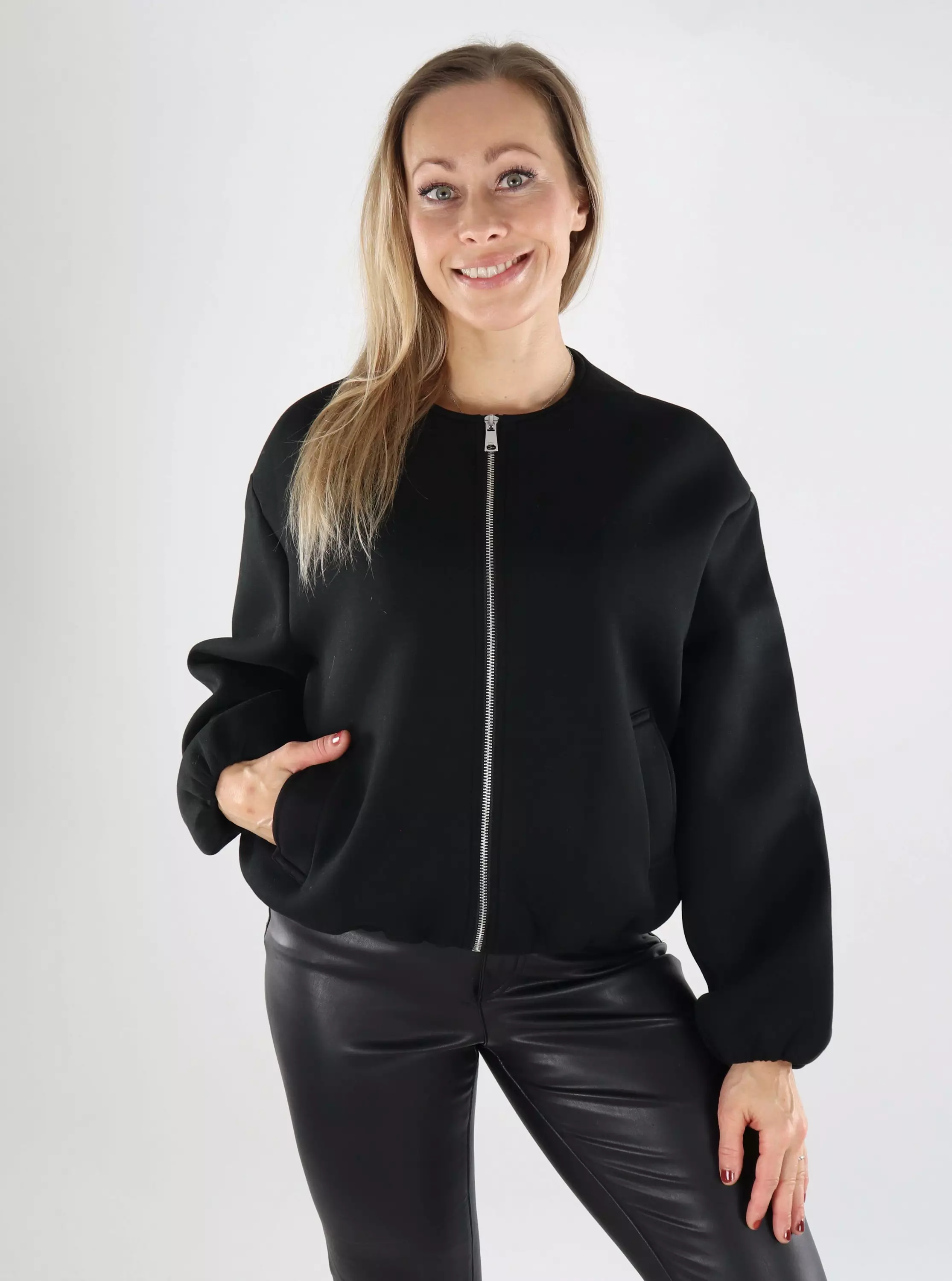 Onlys svarta jacka med ett mjukt och stretchigt yttertyg. Den avslappnade passformen garanterar komfort och enkel kombination med vardagskläder. En mångsidig jacka som passar både för urban stil och mer avslappnad fritid.