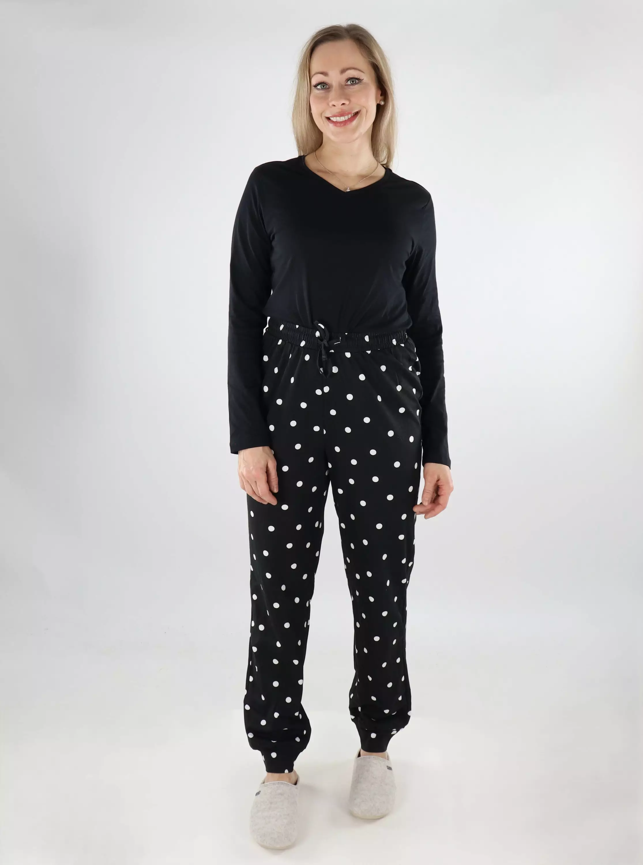 Dampyjamas i mjuk bomull med enfärgad topp och mönstrad pyjamasunderdel.