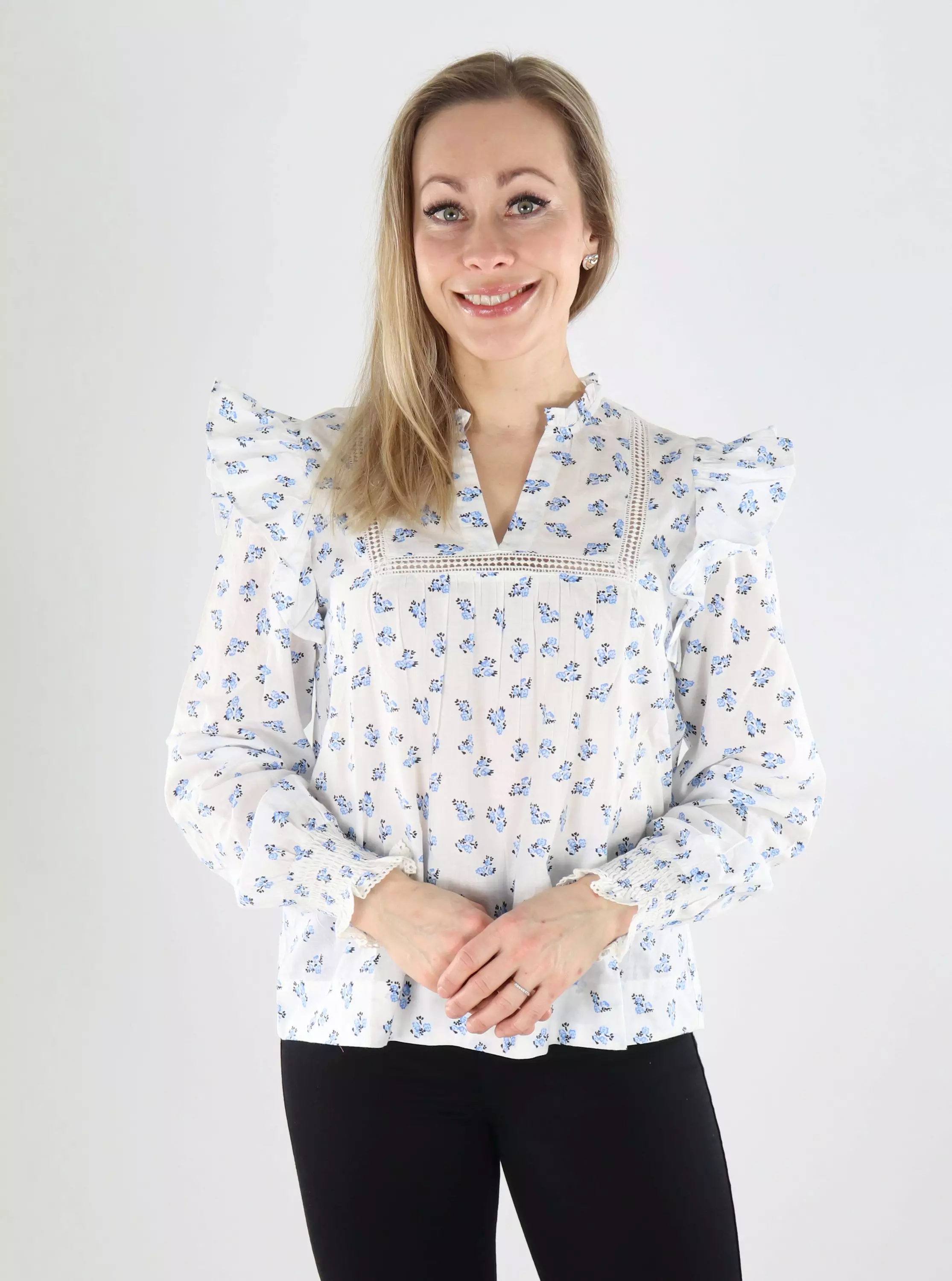 Feminin skjorta med spets- och volangdetaljer. Tillverkad av mycket lätt bomull.
