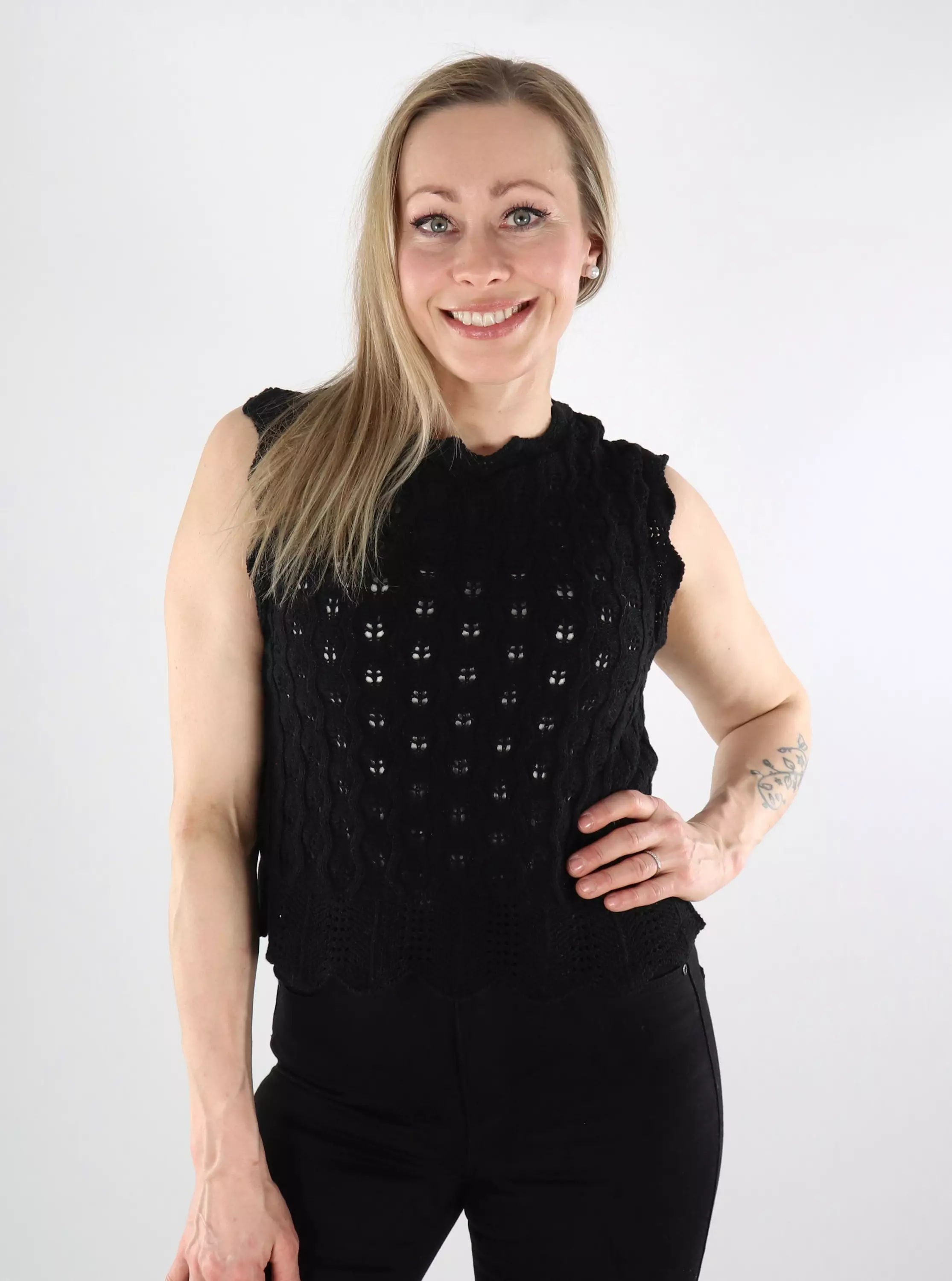 En stickad topp gjord av en mjuk organisk bomullsblandning.