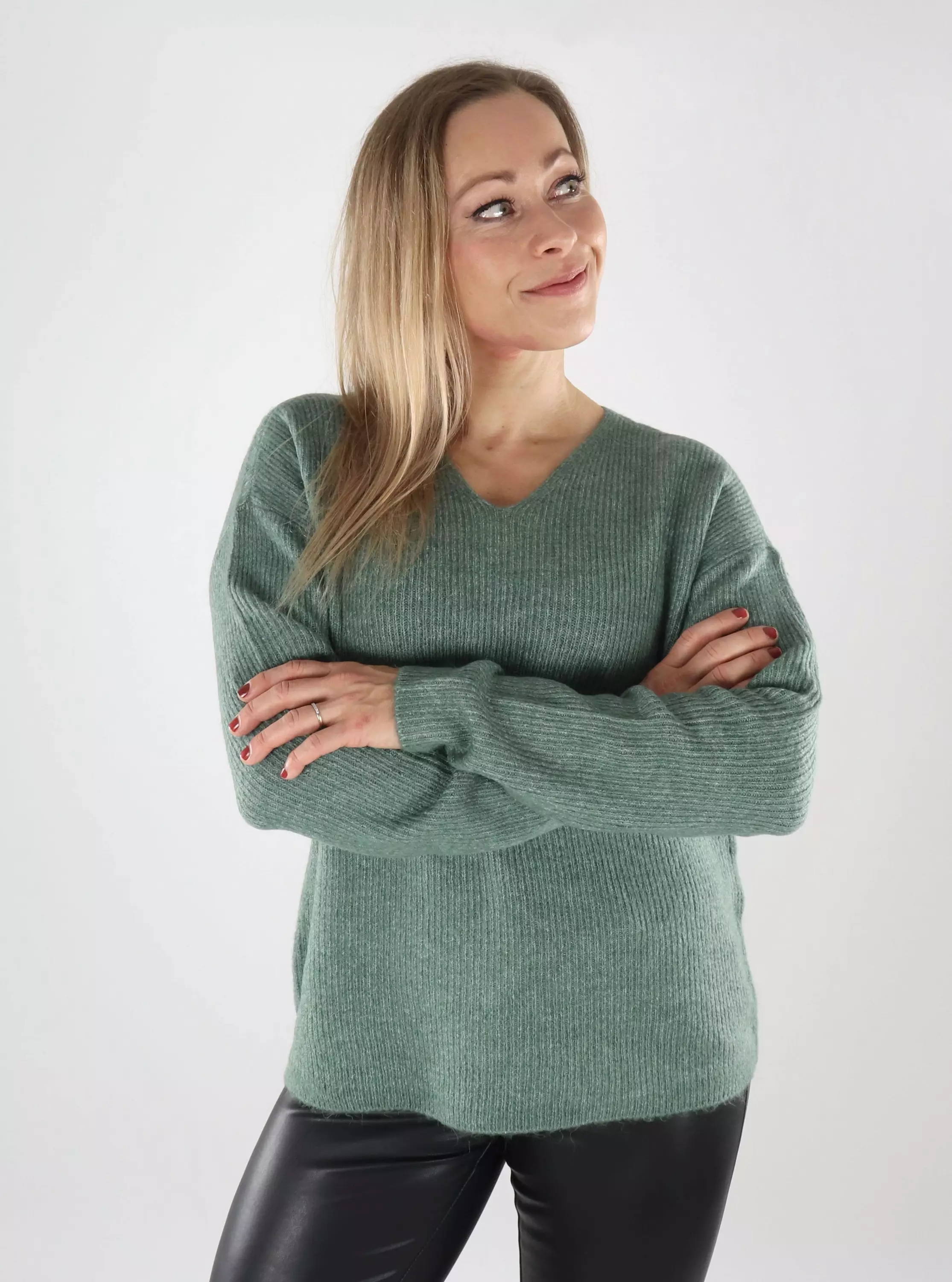 Denna klassiska tröja är tillverkad av en bekväm ribbstickad stickning som sitter vackert. Det mjuka materialet och den smickrande V-ringningen gör den till det perfekta valet för både arbete och fritid.