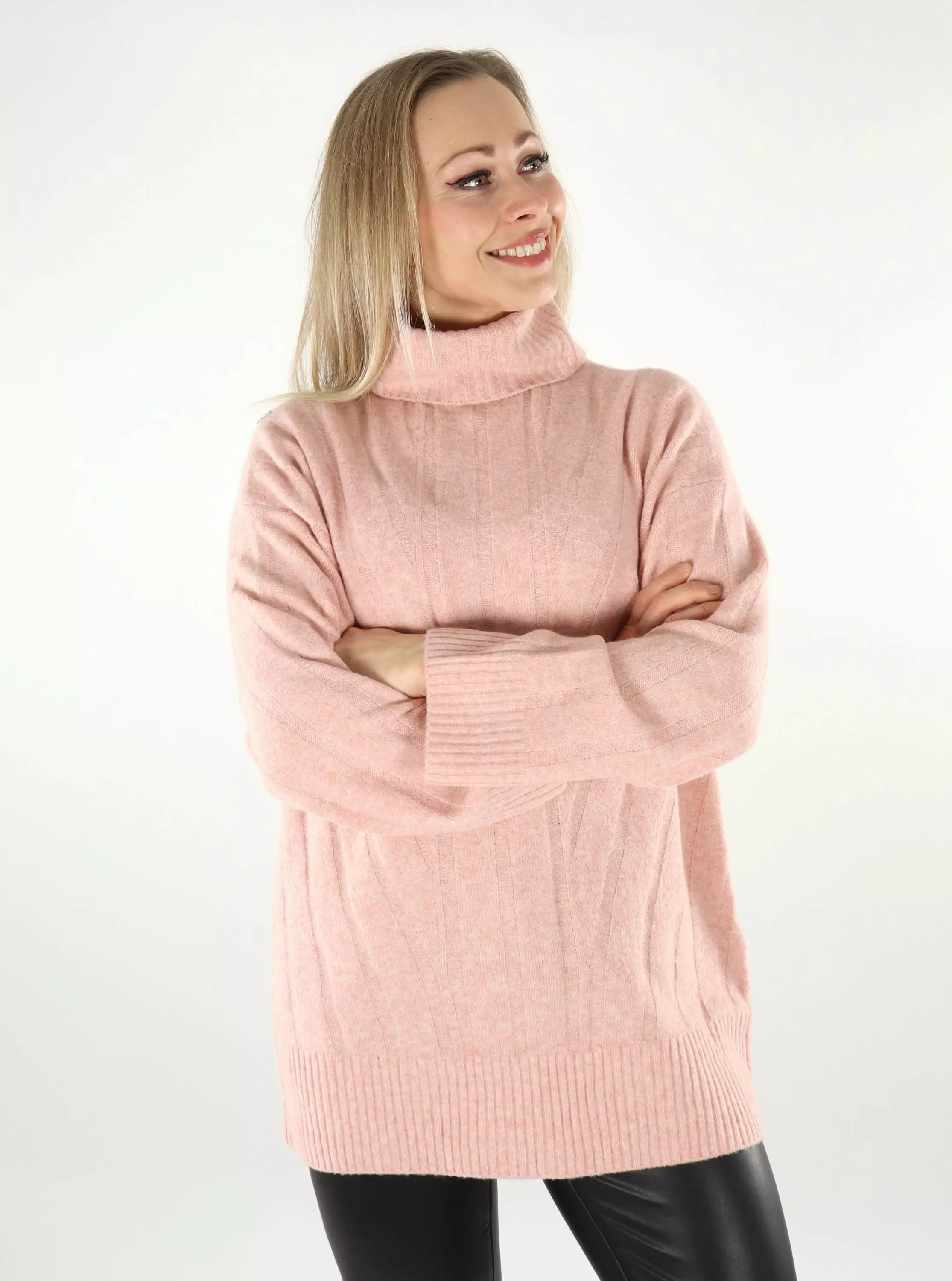 En riktigt mjuk tröja med hög krage och avslappnade ärmar. Passar att kombinera med både jeans och strumpbyxor!