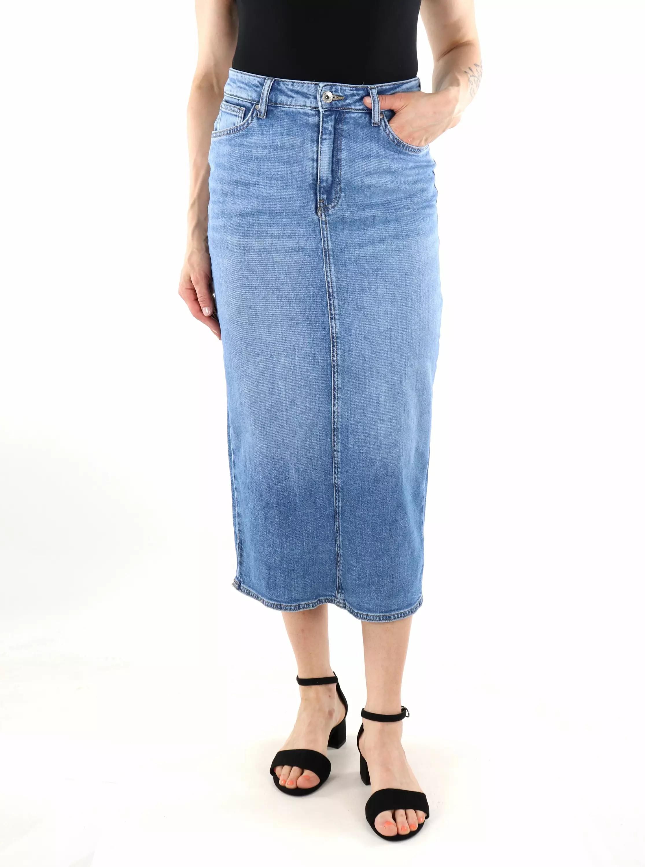 Onlys trendiga jeanskjol i mellanstorlek av mjukt och stretchigt material. En slits i ryggen.