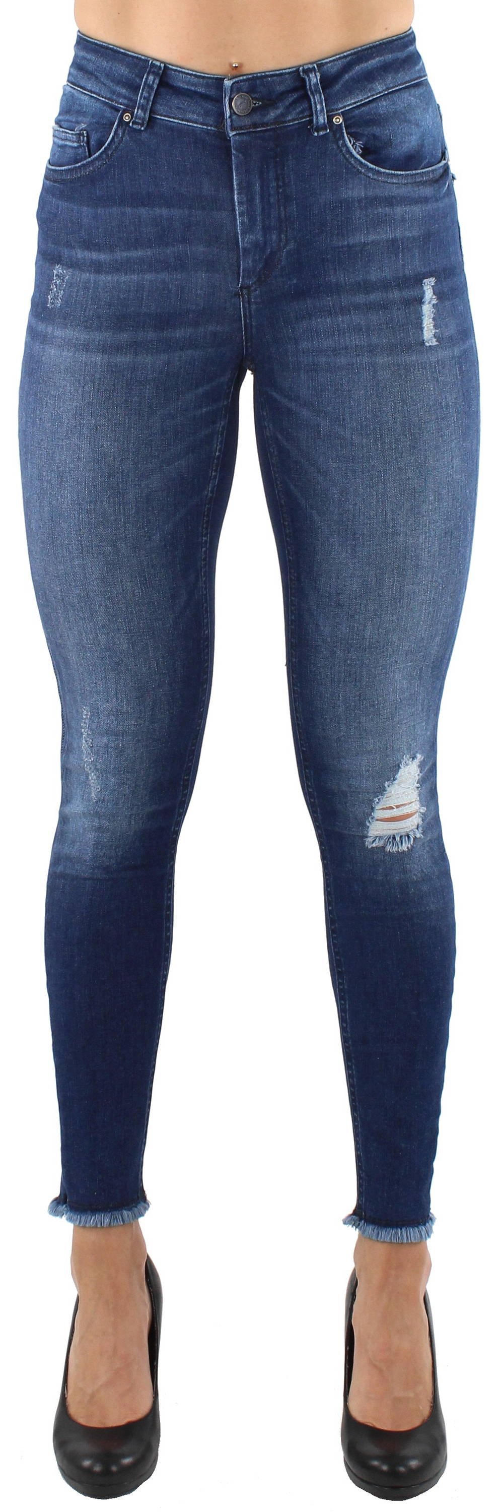 Stretchiga, något slitna blå Mid waist Skinny Fit -jeans.