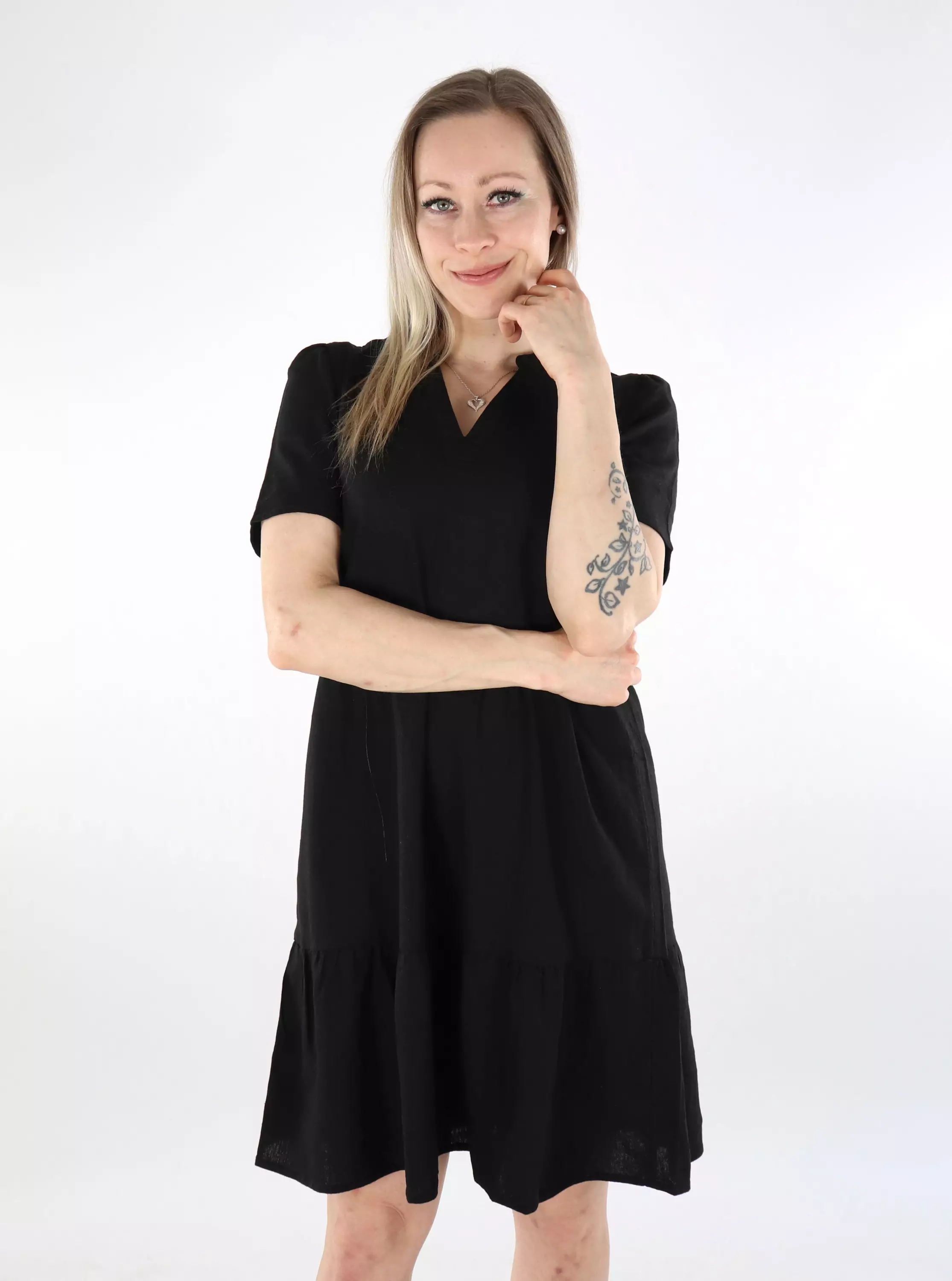 Kortärmad klänning i en lätt och andningsbar viskos-linneblandning.