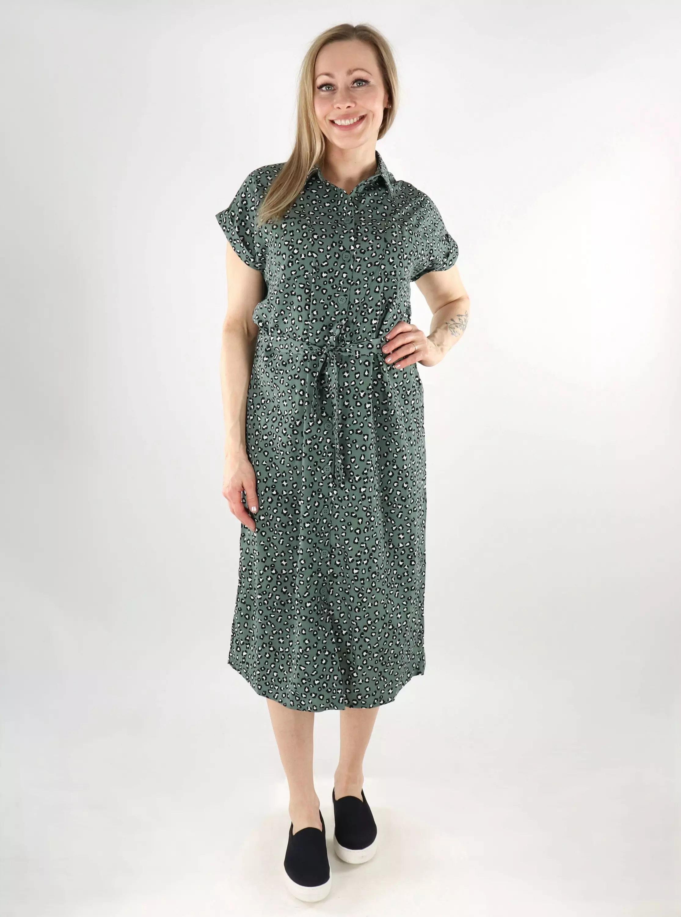 En avslappnad kortärmad skjortklänning som är lätt att kombinera med såväl vardag som vardagliga fester.