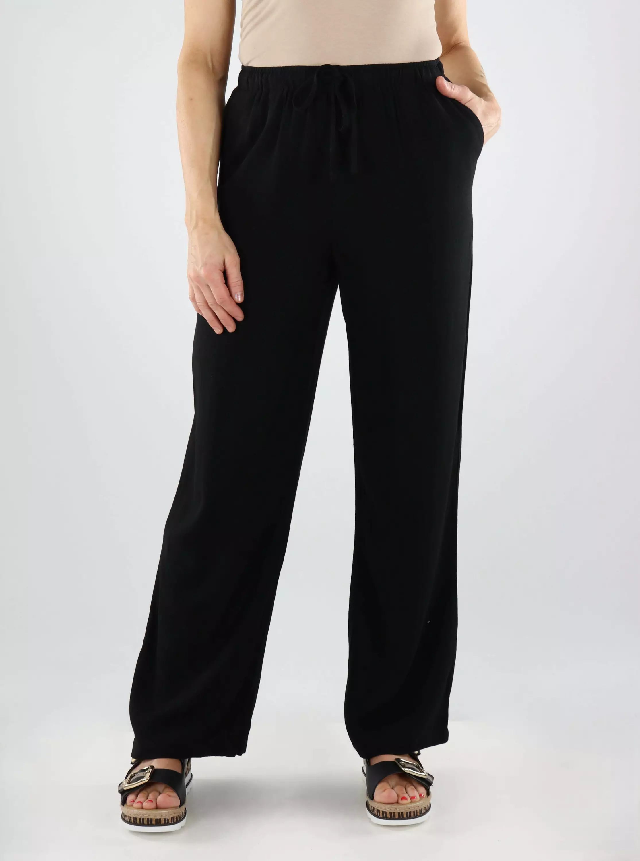 Onlys svarta byxor charmar med sin avslappnade passform och naturligt lätta material. Viskos-linneblandningen gör byxorna andningsbara och bekväma att bära, så de är perfekta för varma dagar. Ett enkelt val för en avslappnad, välvårdad vardagslook!