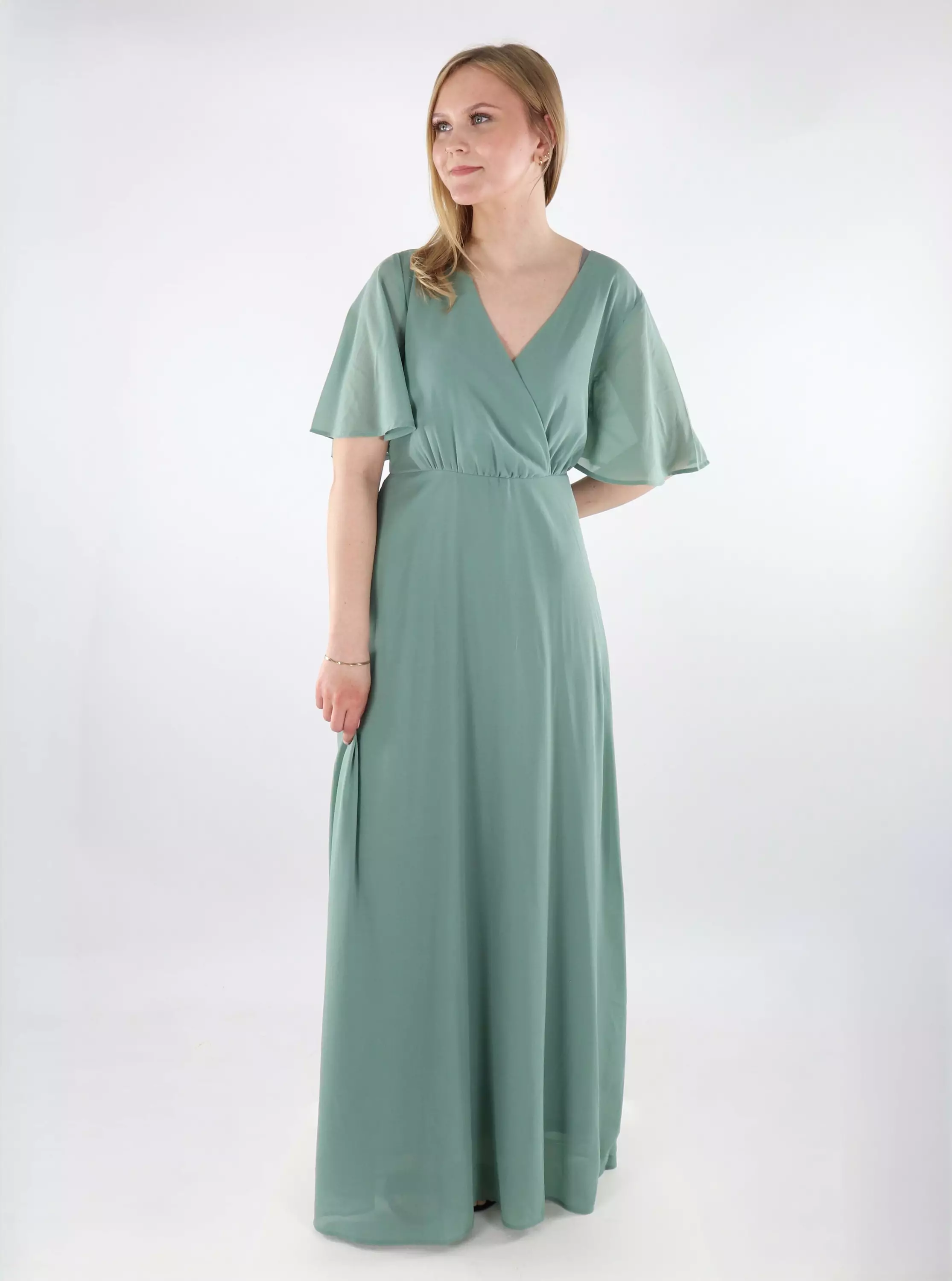 En vackert flytande maxiklänning från Only. Den omlotta toppen och V-ringningen framhäver dekolletaget vackert. Det perfekta valet för alla fester!