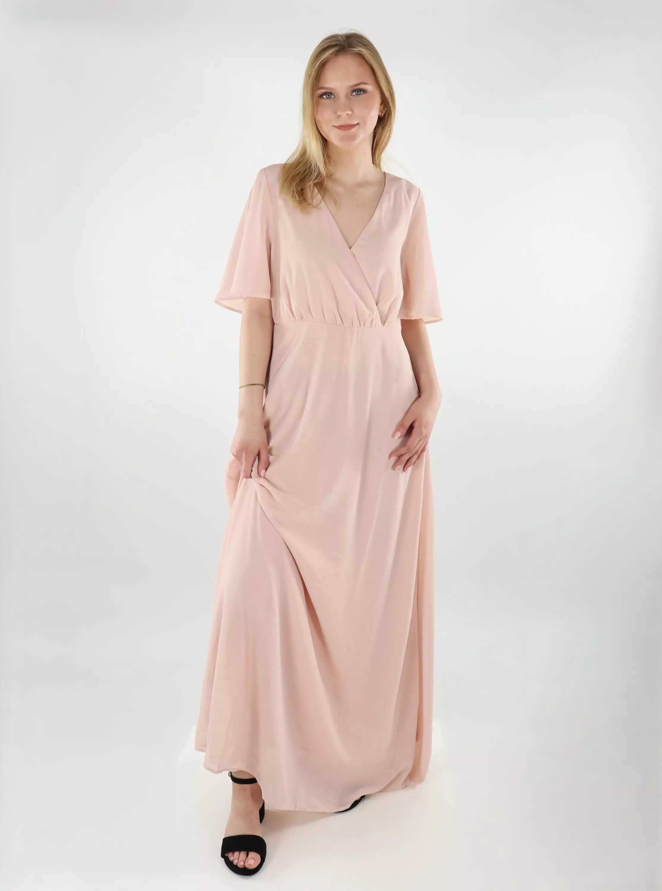 En vackert flytande maxiklänning från Only. Den omlotta toppen och V-ringningen framhäver dekolletaget vackert. Det perfekta valet för alla fester!