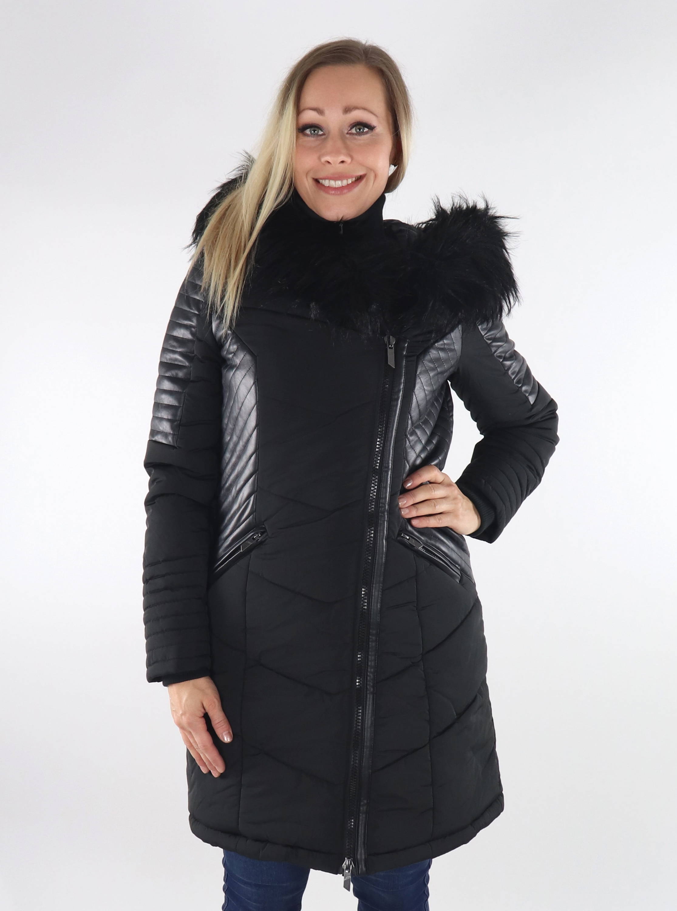 Vindtät quiltad kappa med en vacker fuskpälskant.