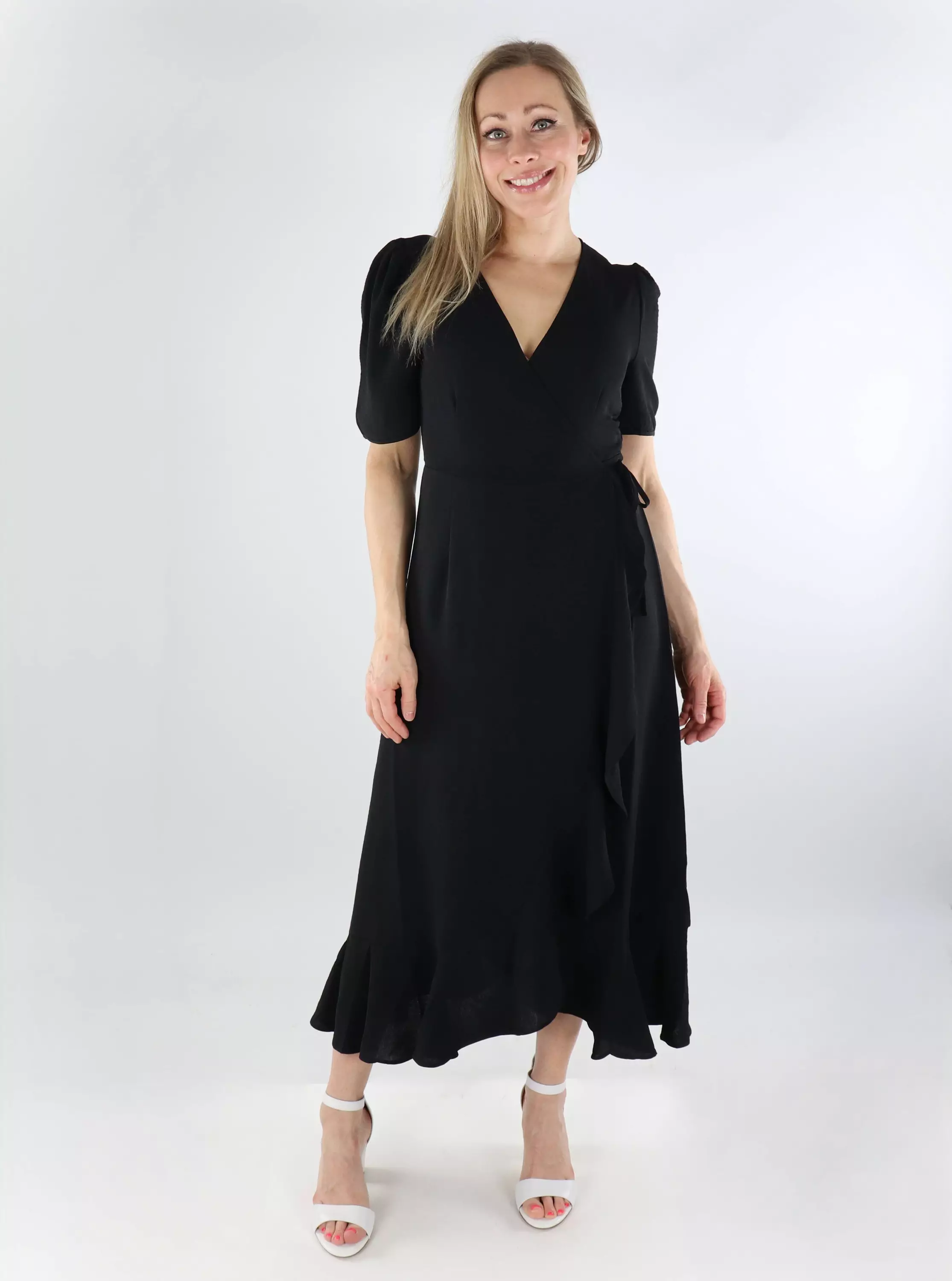 Onlys stretchiga omlottklänning med en vacker midi-lång volangfåll.