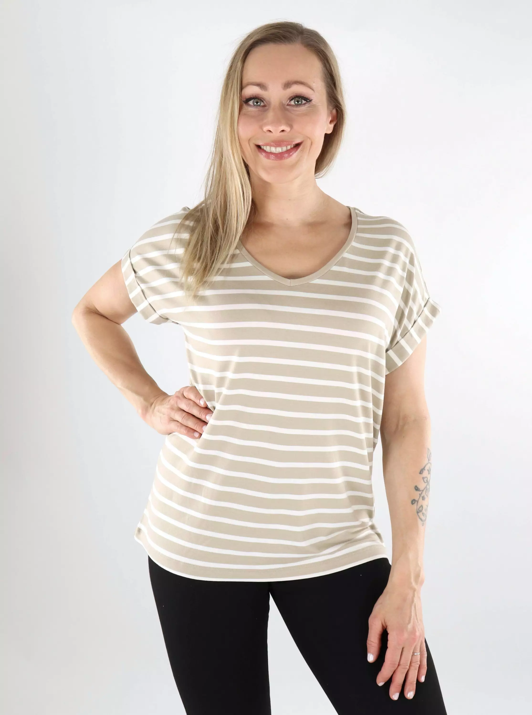Only randig dam T-shirt Moster V-Neck feather gray/cloud dancer