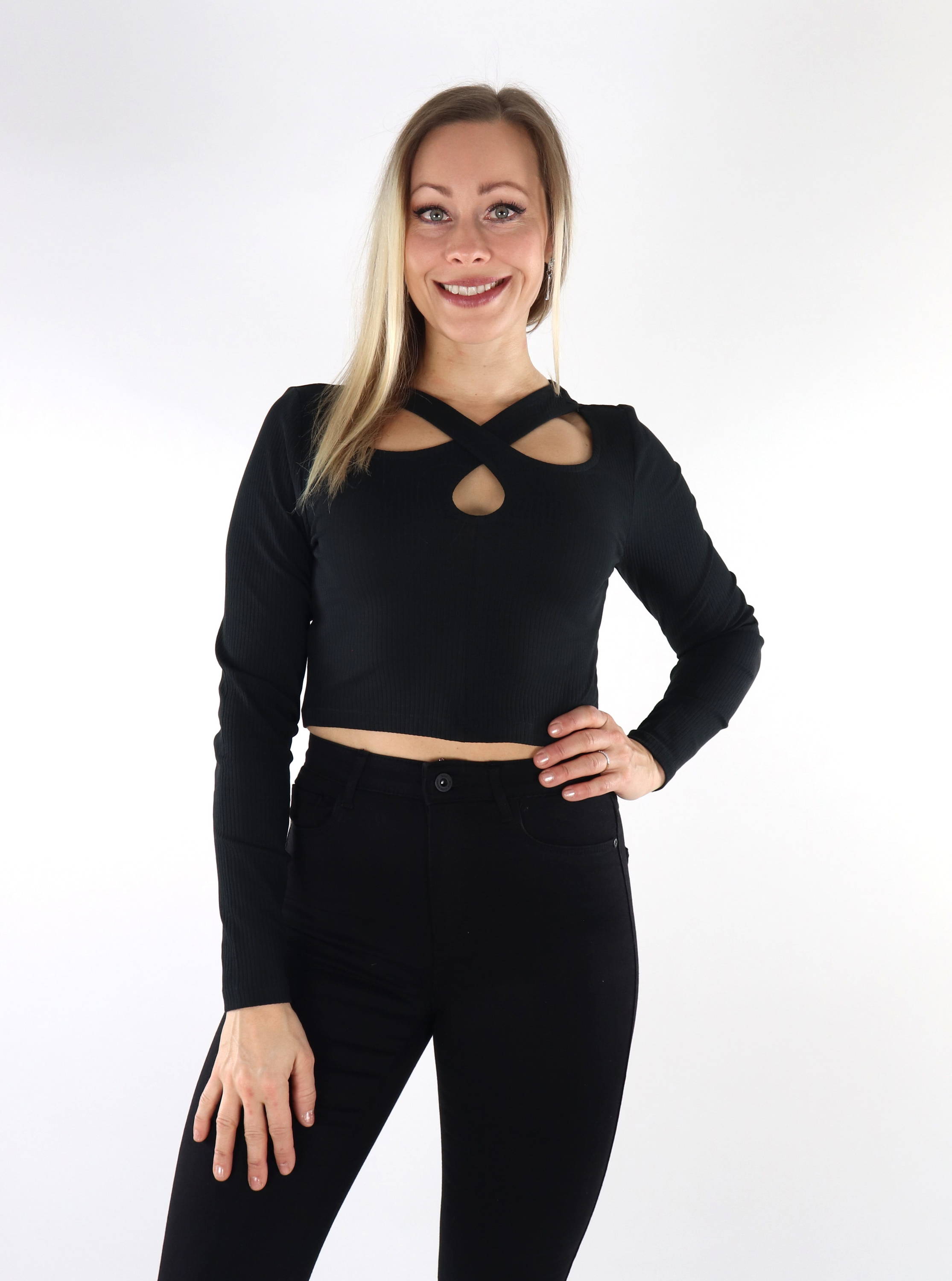 Stretchig ribbad skjorta, kort avskuren fåll.
