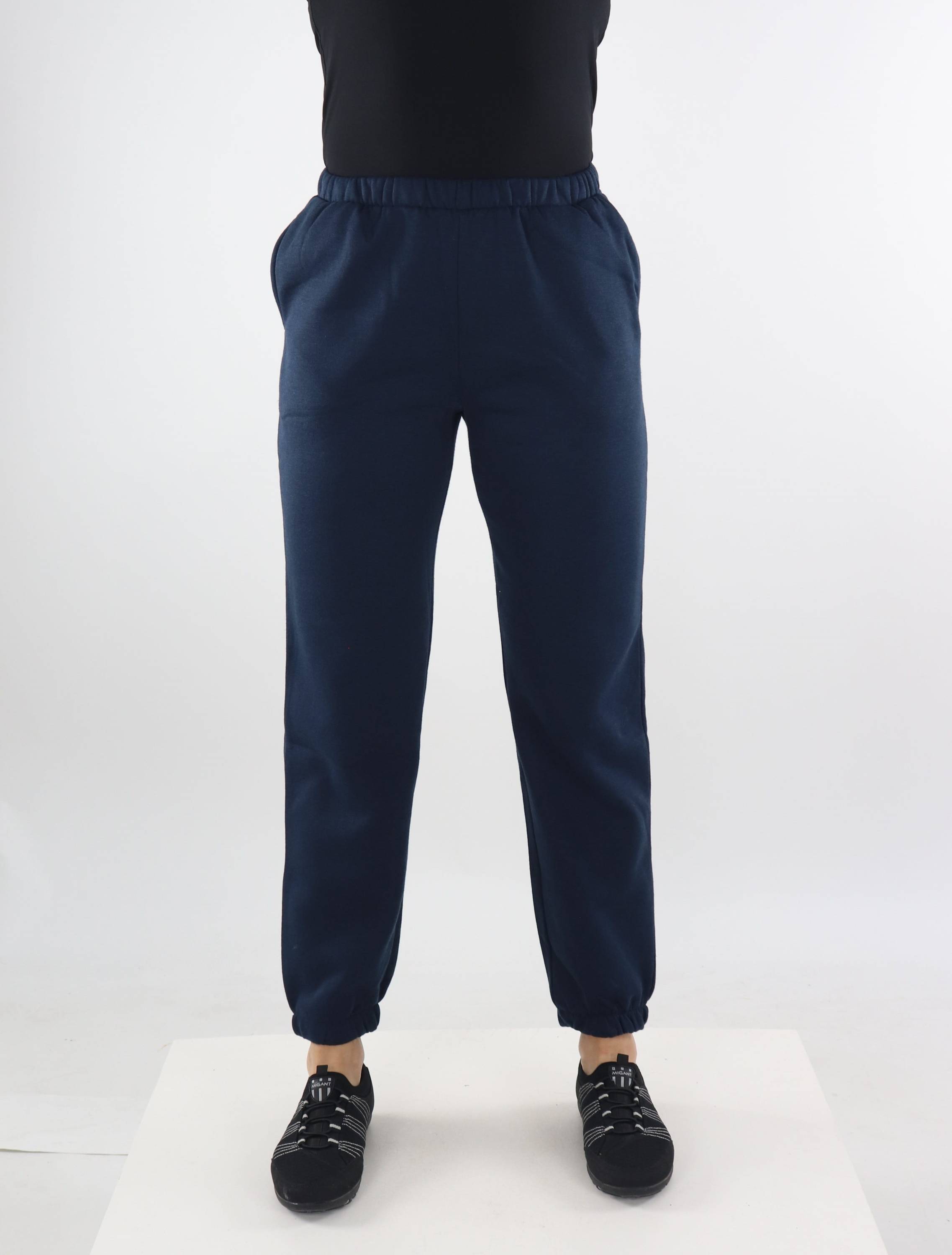 Mjuka mörkblå träningsbyxor med fickor fram