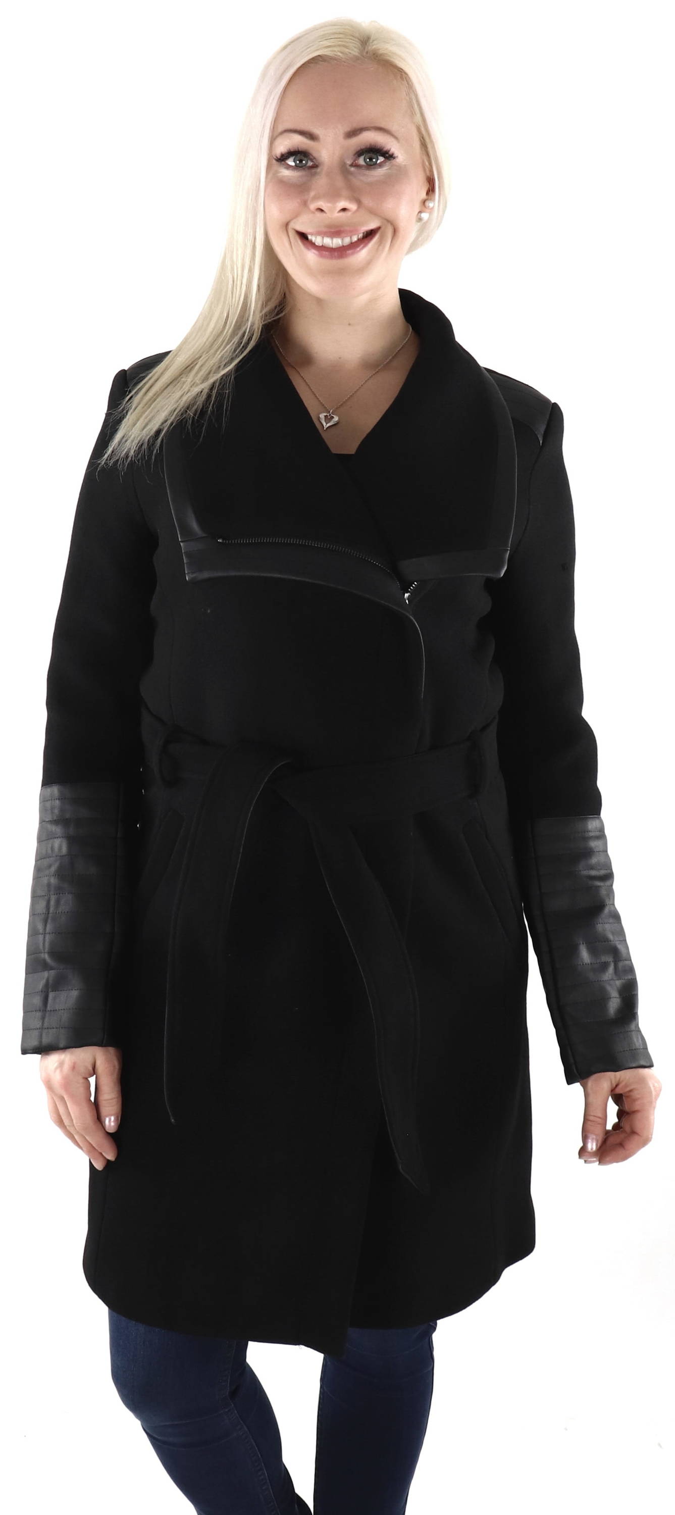 Ullkappa med detaljer i konstläder.