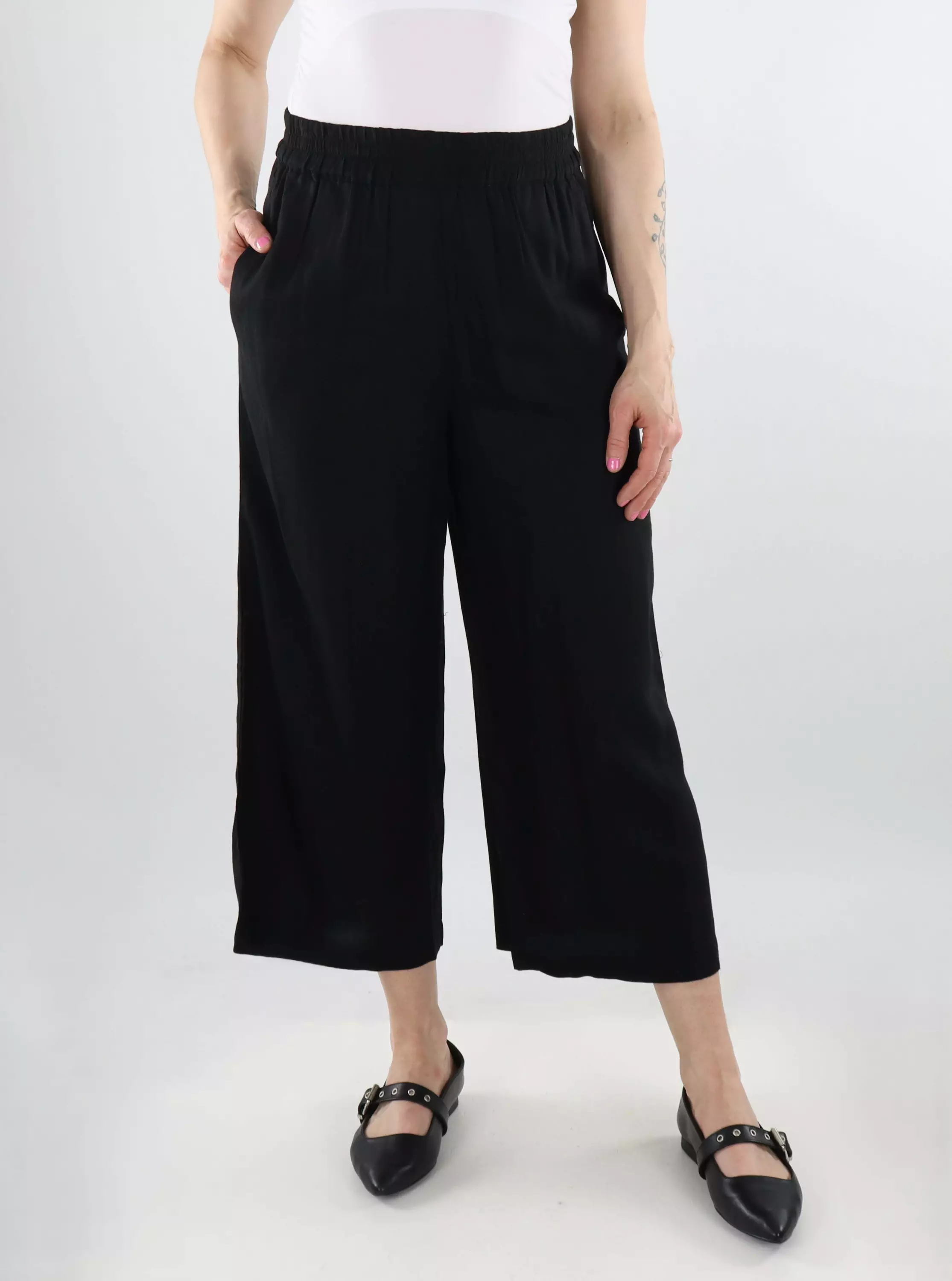 Skapa en snygg och bekväm sommaroutfit med Pieces culottes! Dessa byxor är gjorda av en linneblandning av viskos som är riktigt lätt och andas på huden.