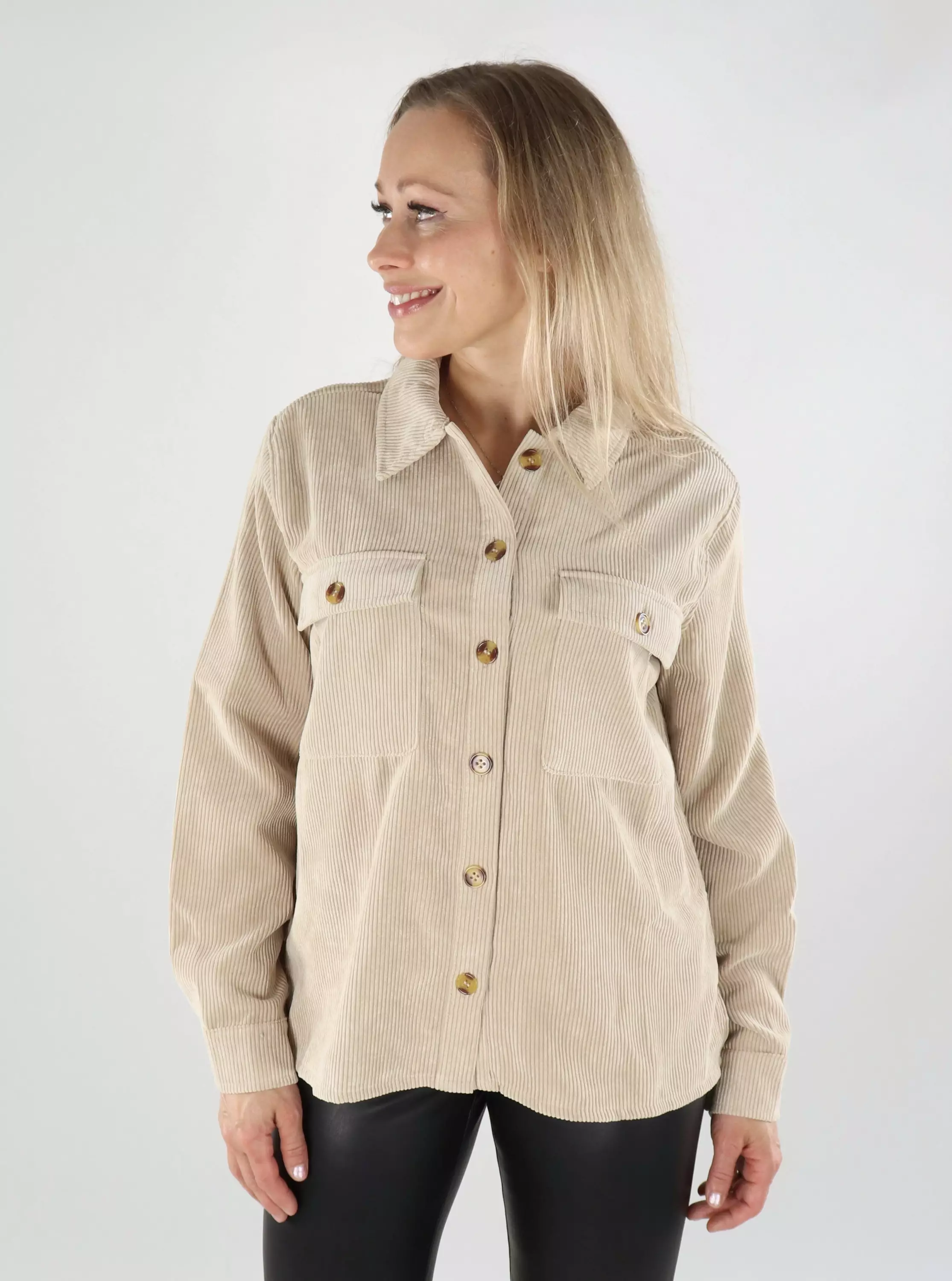 Pieces beige manchesterskjortjacka är ett avslappnat och trendigt val! Mjukt material och snygga bruna knappar fulländar looken. Lätt att kombinera med både byxor och klänningar.