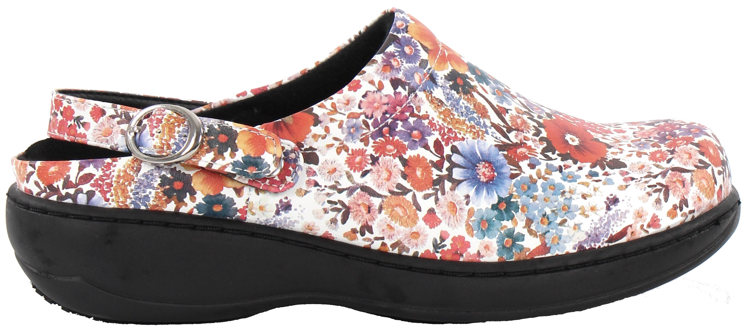 Blommiga arbetsskor med justerbar rem och fast tådel