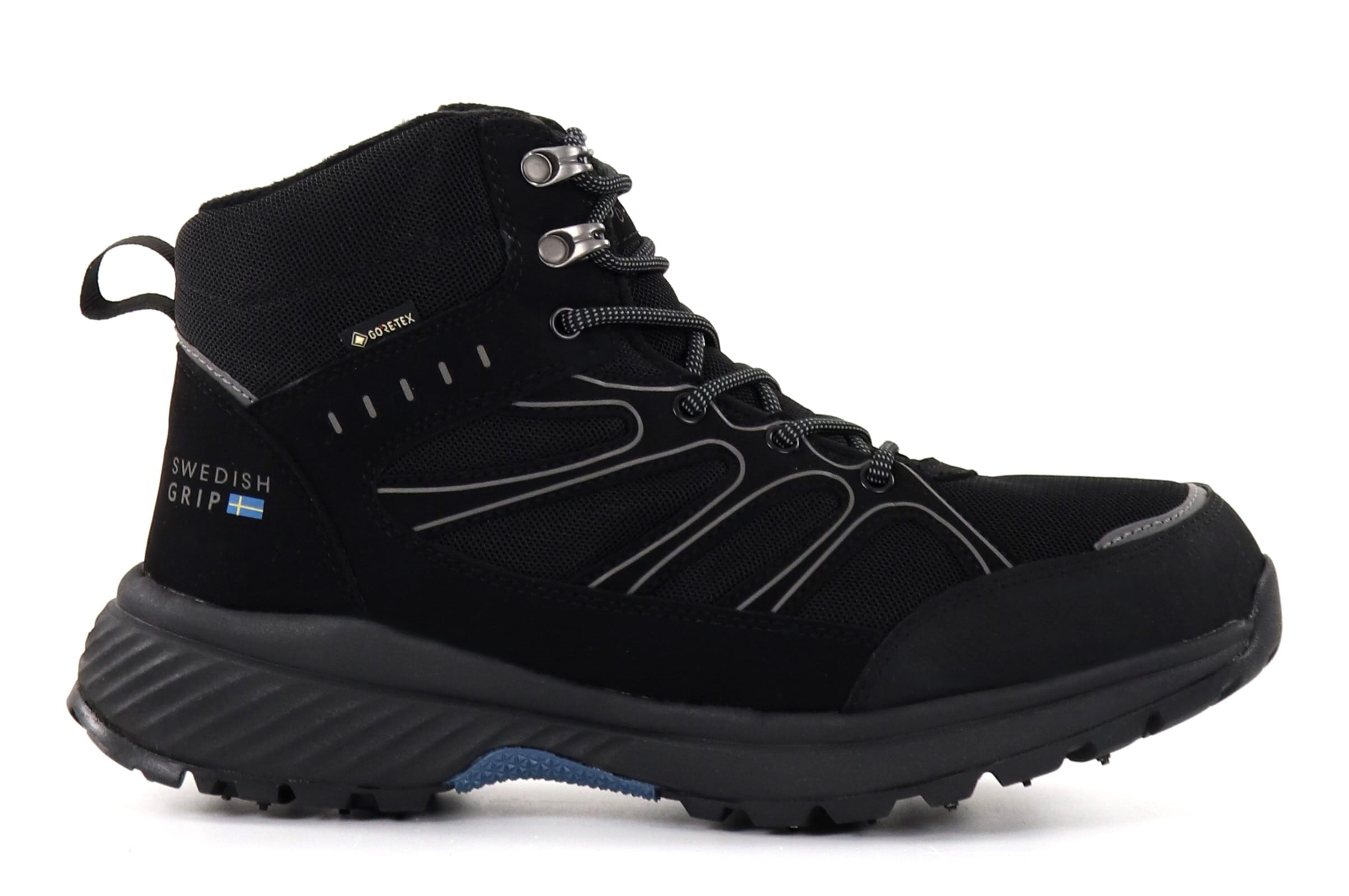- Gripdubbar på botten, en blandning av mjuka gummidubbar och dubbar av hårda stål