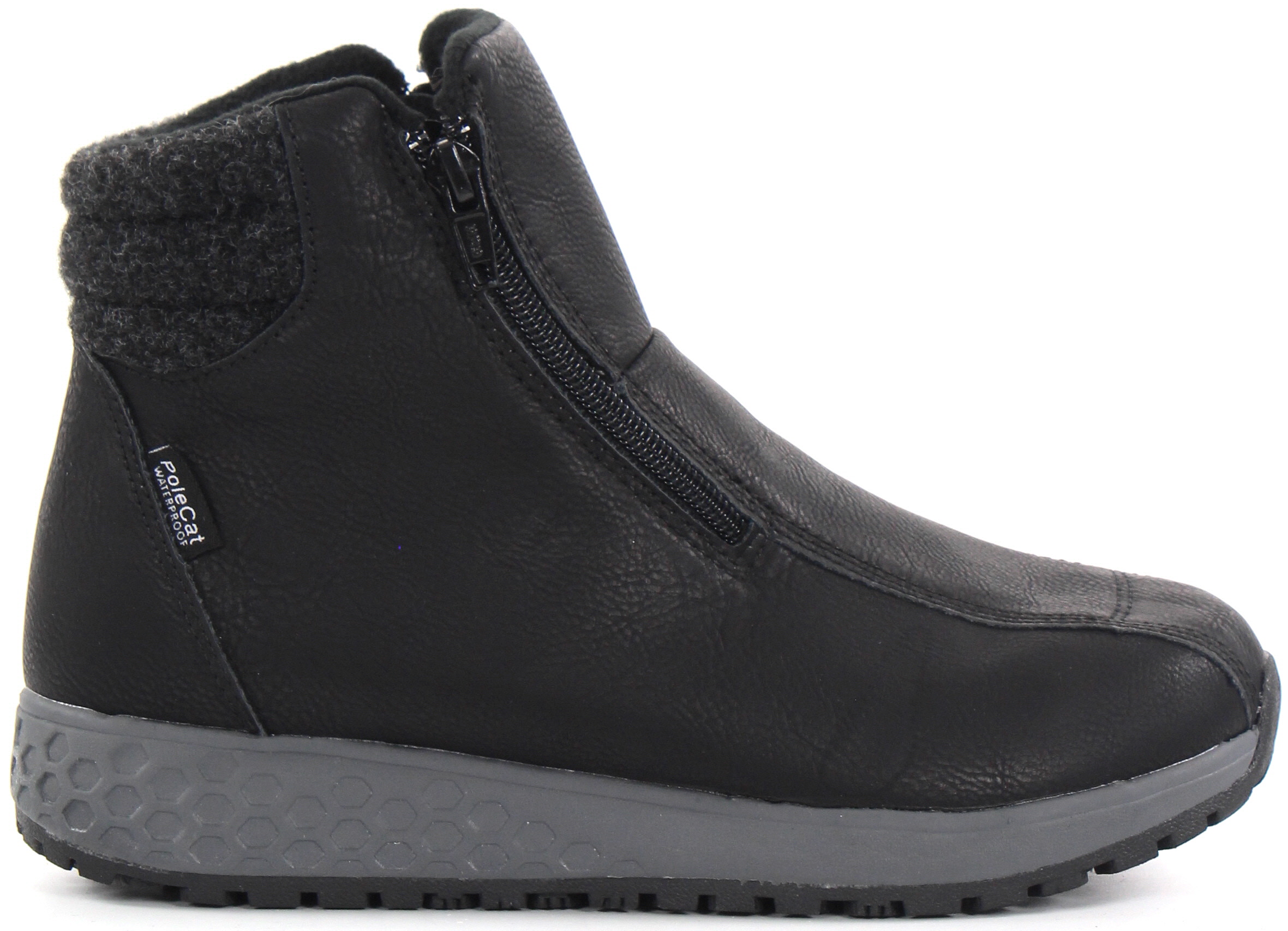Vattentäta stövletter i konstmaterial och med två dragkedjor.