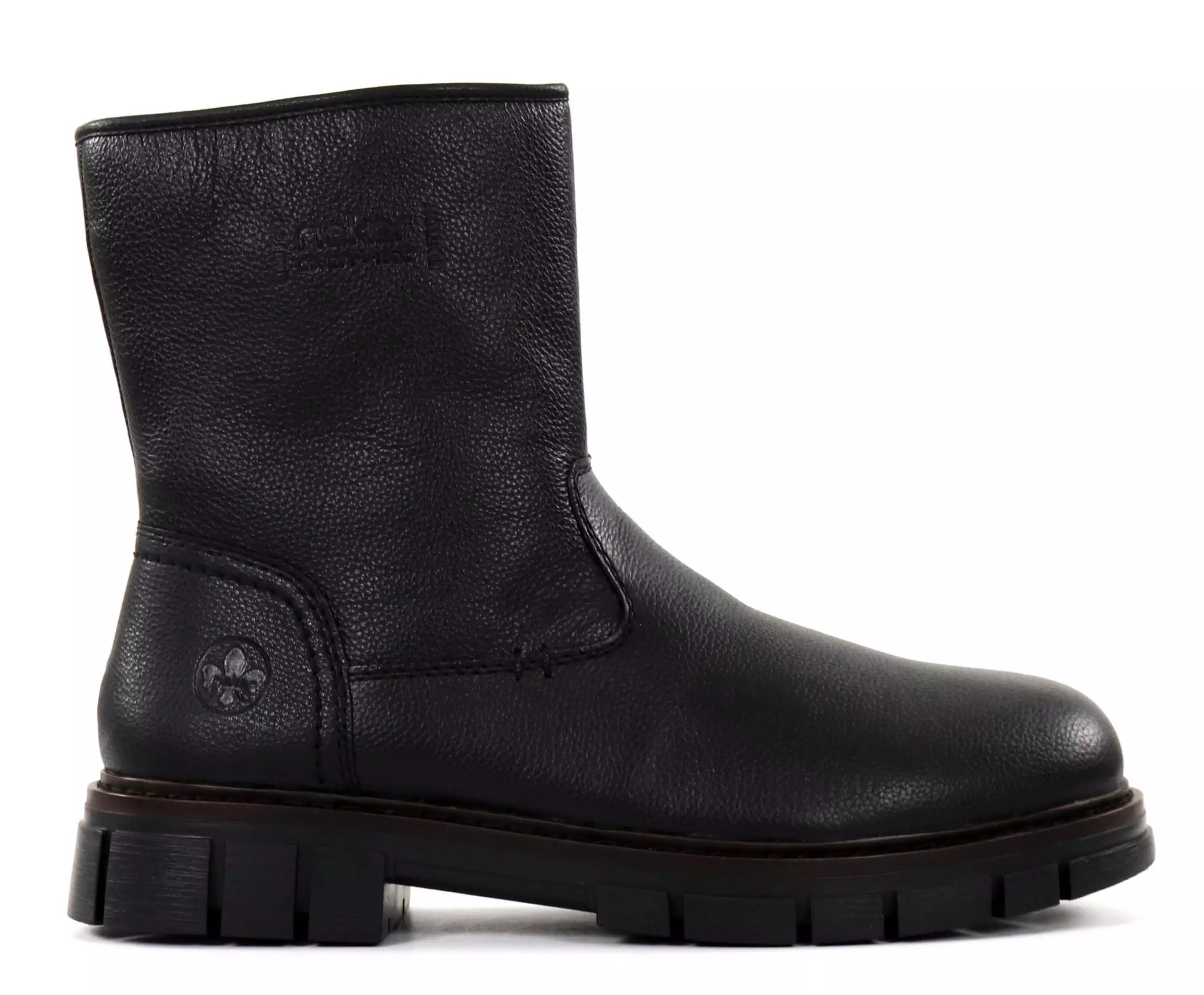 Breda ankelboots i läder med fårullsfoder och dragkedja som gör den lättare att ta på.