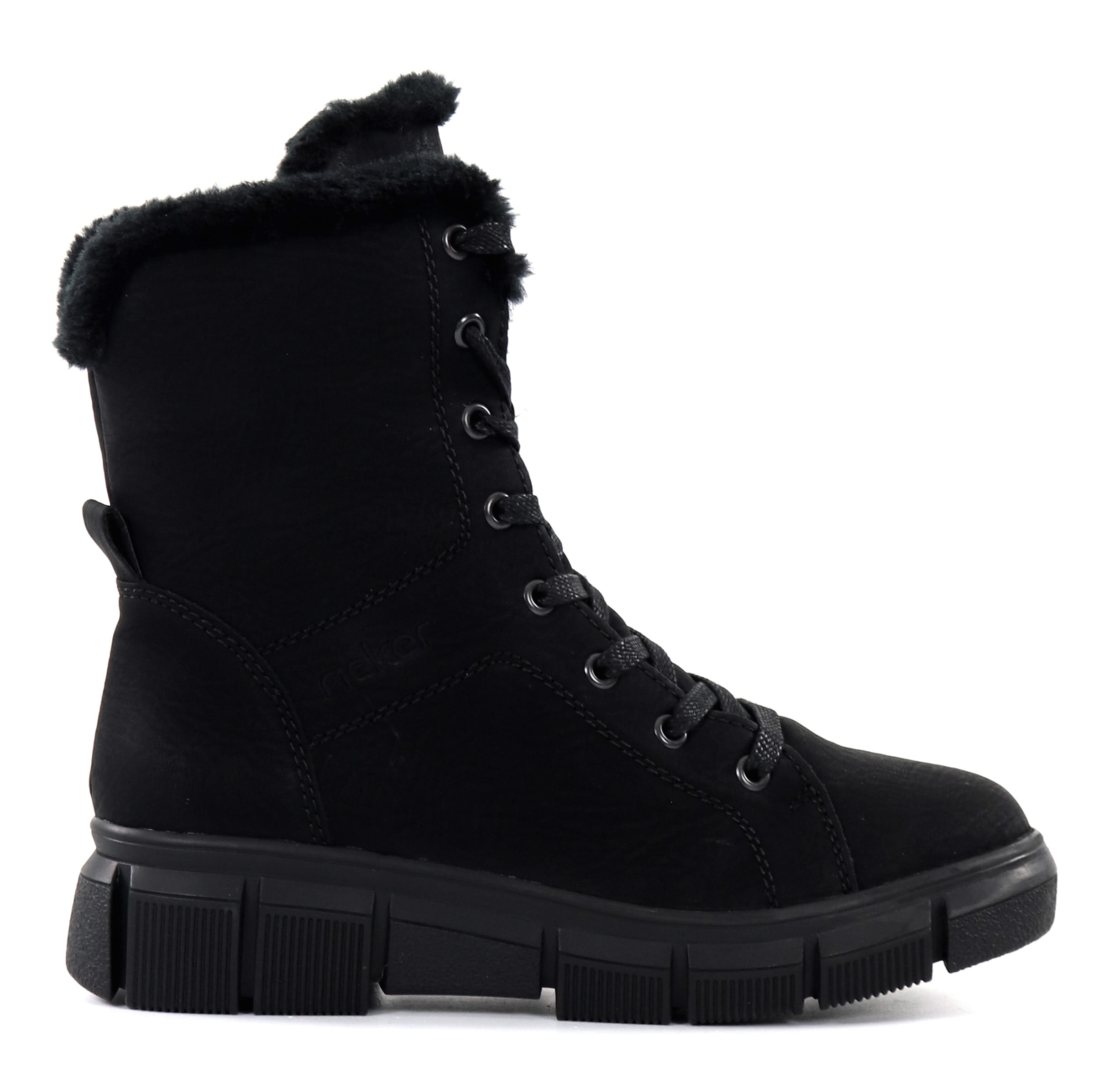 Varmfodrade Rieker ankelboots med dragkedjor och snörning.