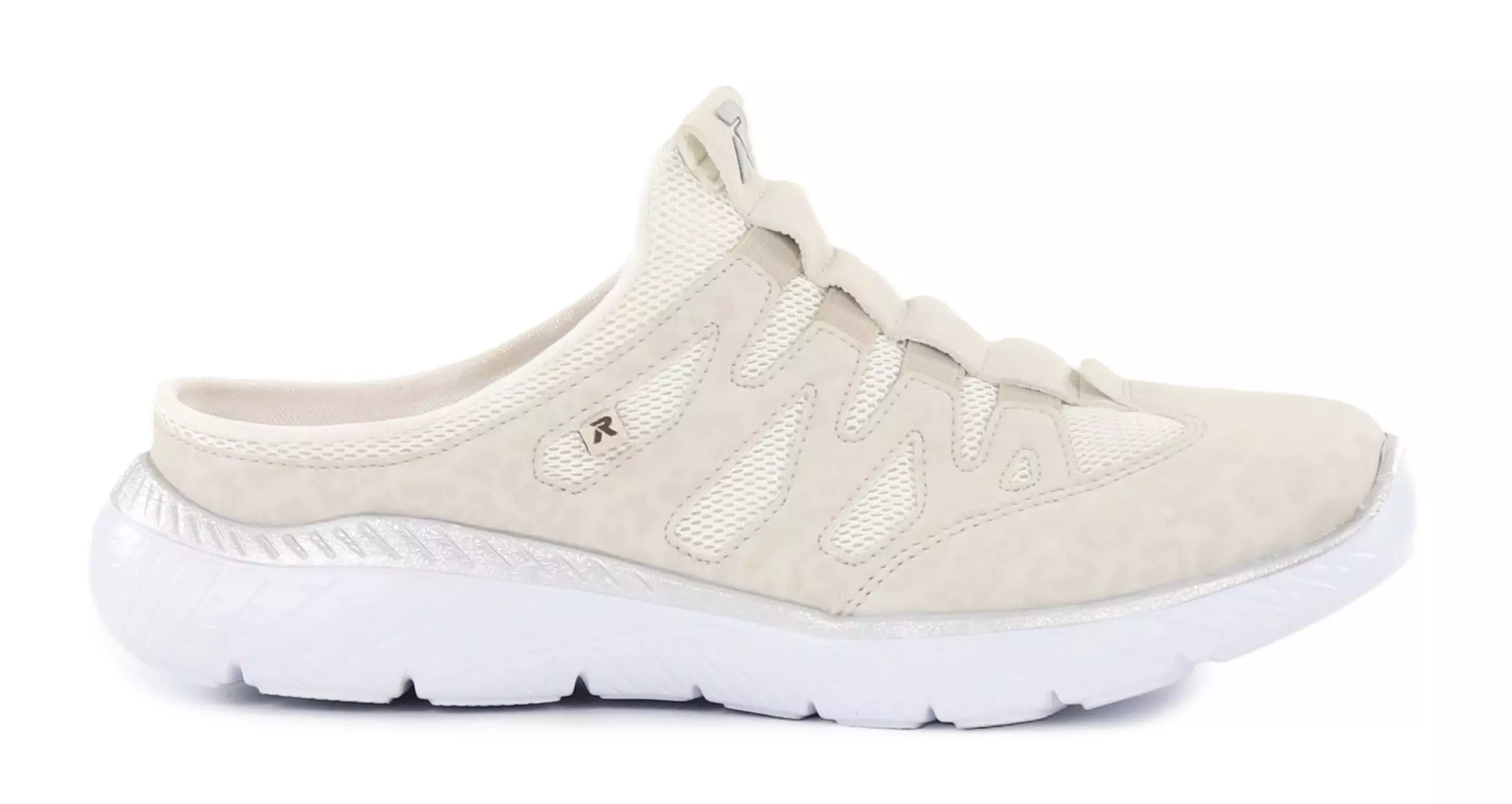 Riekers lätta beige mulor med en formande Memosoft-innersula som anpassar sig efter din fot och ger unik mjukhet hela dagen.