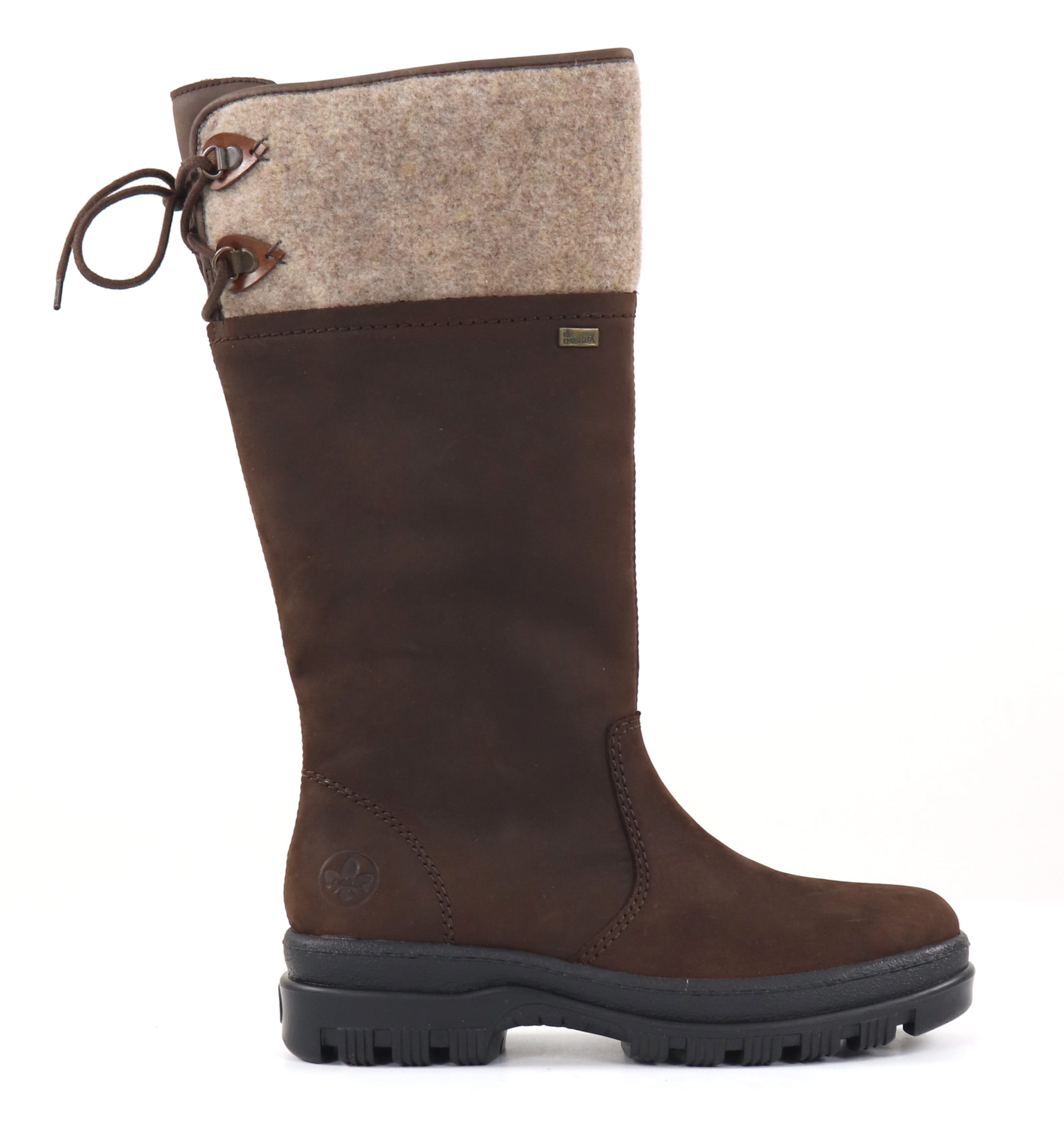 Varma läderstövlar med vattenavvisande RiekerTex-membran och vändbara dubbar.