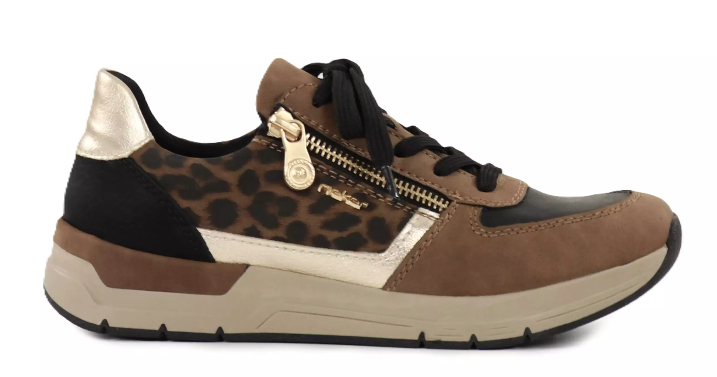 Snygga bruna Rieker sneakers får en personlig look med trendiga leoparddetaljer. Sidodragkedjan gör det snabbt att ta på dem och snörningen säkerställer en justerbar passform. Uttagbara innersulor ger extra komfort och möjligheten att använda dina egna innersulor. Ett avslappnat och elegant val för vardagen!