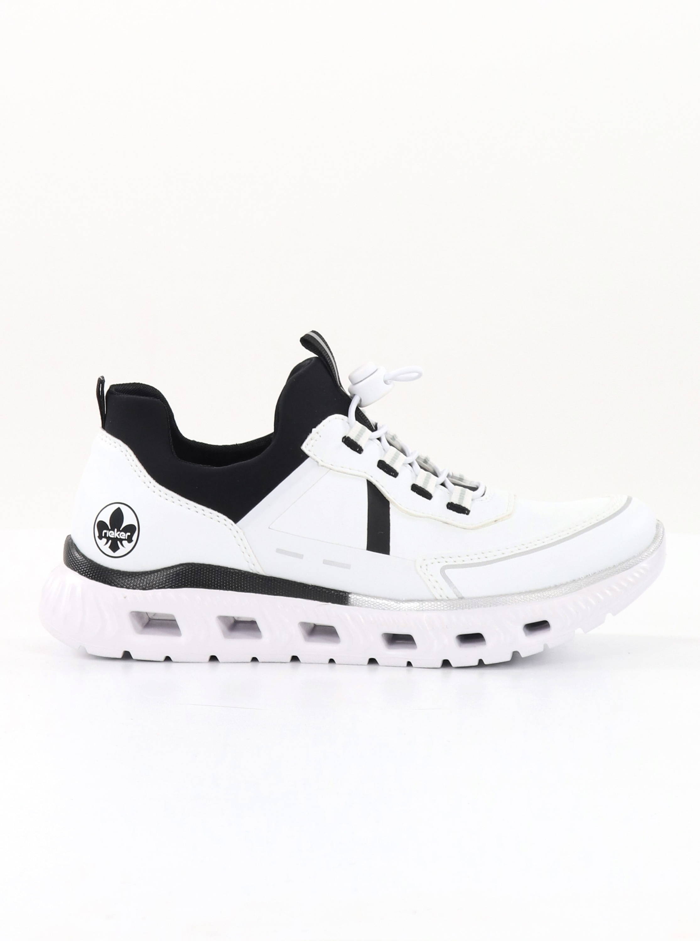 Sportiga vita sneakers från Rieker. MemoSoft innersulan som formar sig efter foten fullbordar komforten. Ett utmärkt val för aktiv rörelse och fritid.