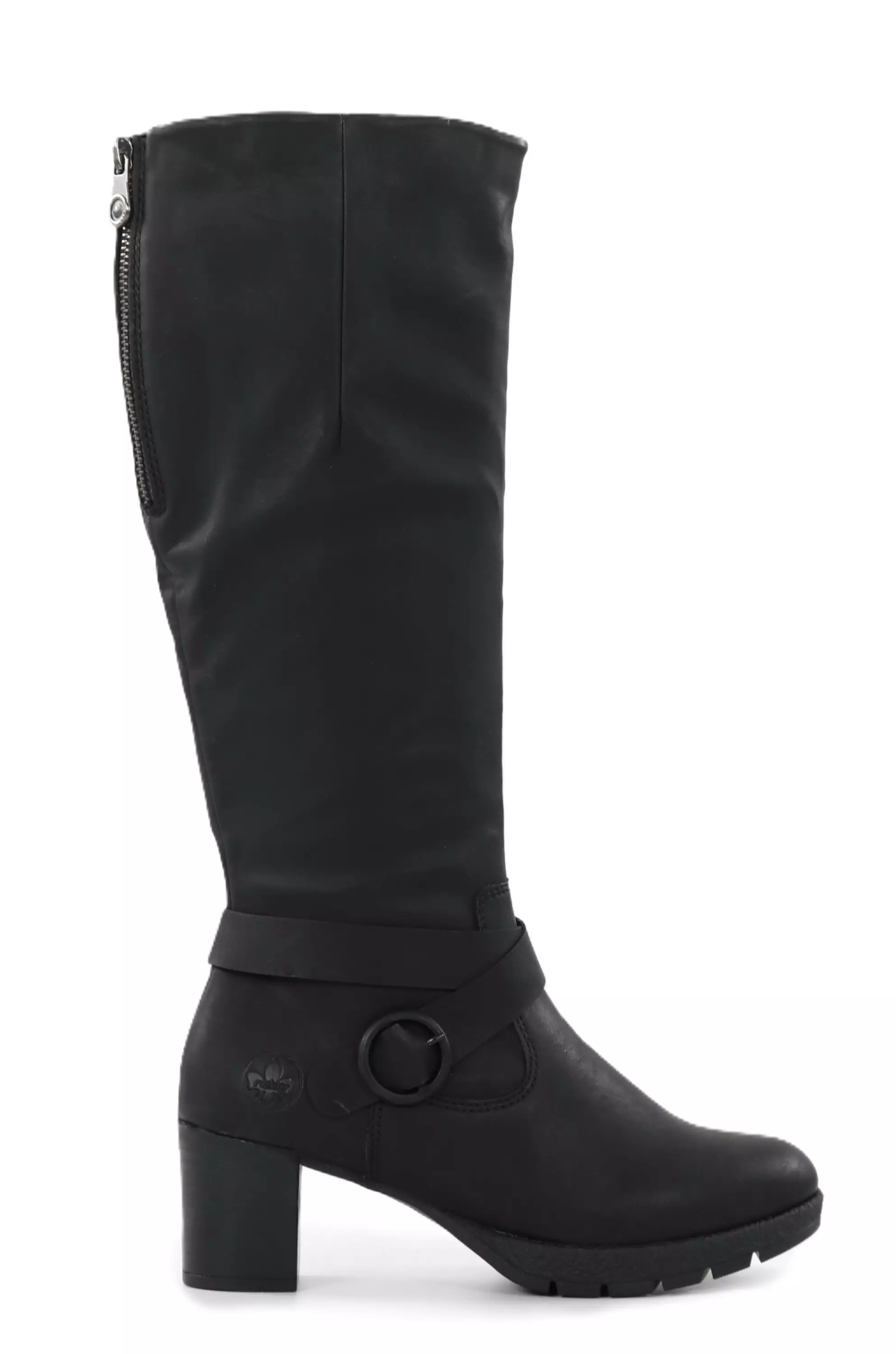 Snygga Rieker-stövlar med en robust klack och ett smalt XS-skaft. Stretchen som syns under dragkedjan på baksidan av skaftet ger extra utrymme och flexibilitet vid behov.
