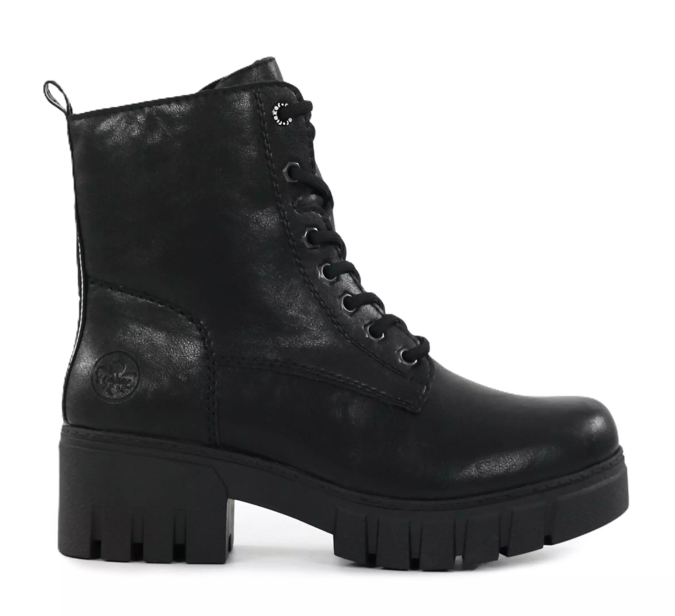 Komfort och stil i ett paket - Rieker stövletter med teddyfoder håller dina fötter varma även på kalla dagar! Den slående Rieker-logotypen på baksidan och den praktiska snörningen på ovansidan ger stilen en elegant touch.