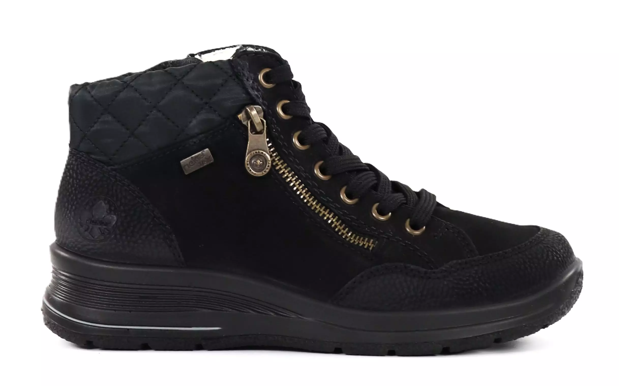 Bekväma och praktiska Rieker-stövletter, som kombinerar justerbar snörning, en praktisk dragkedja på sidan och ett vattenavvisande RiekerTex-membran. Det mjuka fuskpälsfodret håller dina fötter varma även på svala dagar - det perfekta valet för växlande väder!