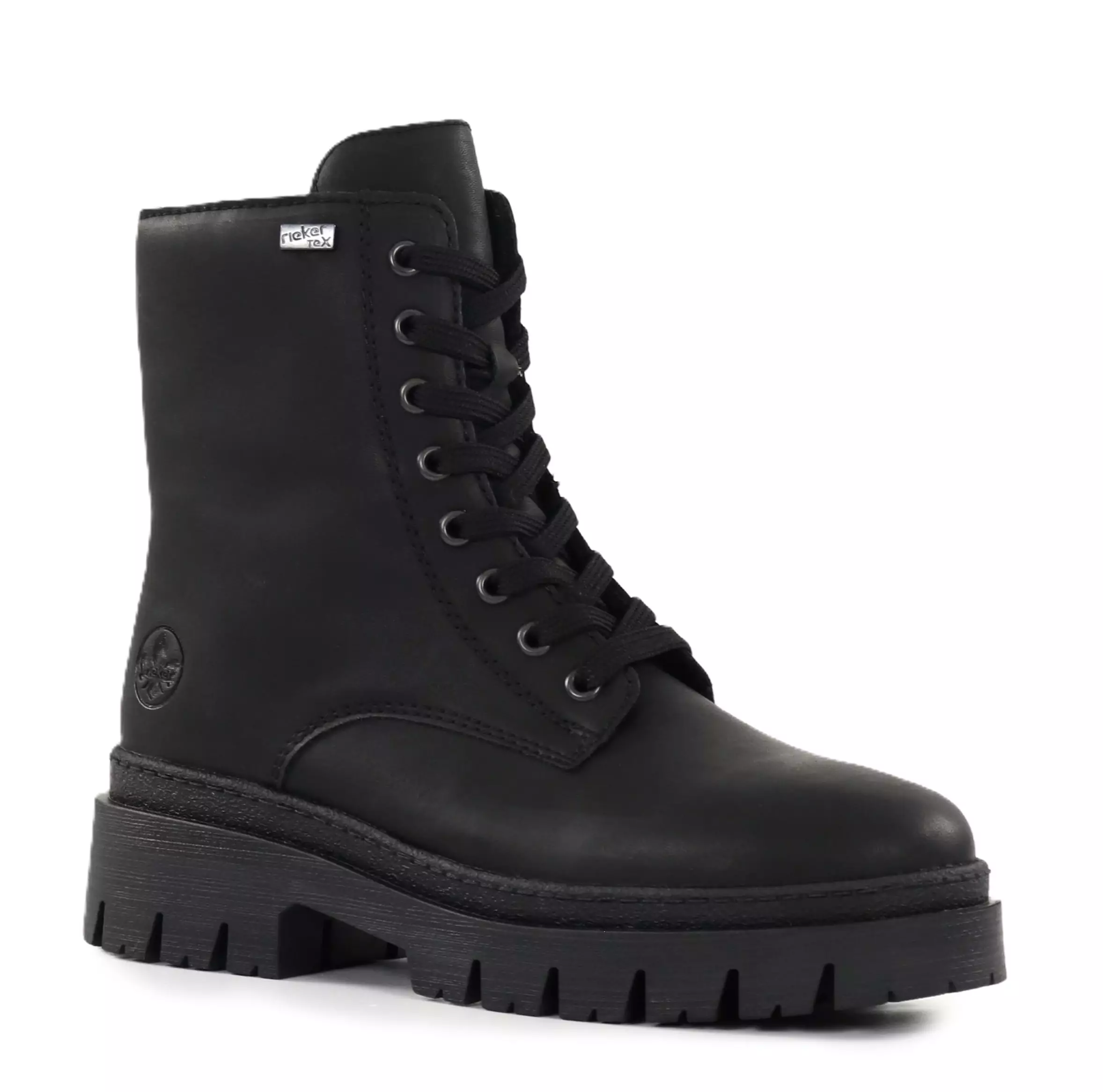 Dessa Rieker-stövletter kombinerar en trendig stridsstövelstil med ett varmt teddyfoder och ett vattenavvisande RiekerTex-membran. Perfekt för vinterns växlande väder – dina fötter håller sig varma och torra utan att kompromissa med stilen!