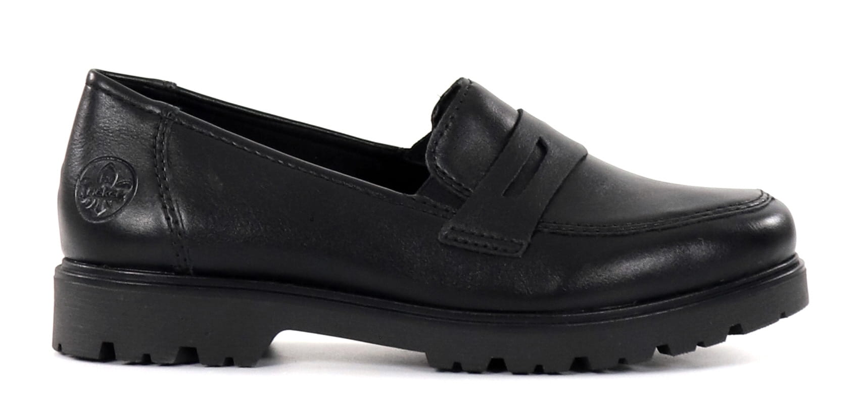 Riekers trendiga loafers med mjuka innersula i äkta läder. Tack vare de elastiska kilarna är skorna lätta att ta på.